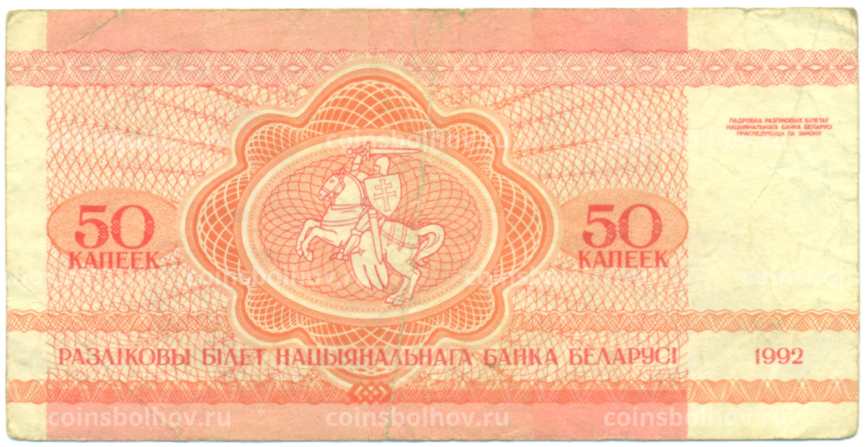 Банкнота 50 копеек 1992 года Белоруссия
