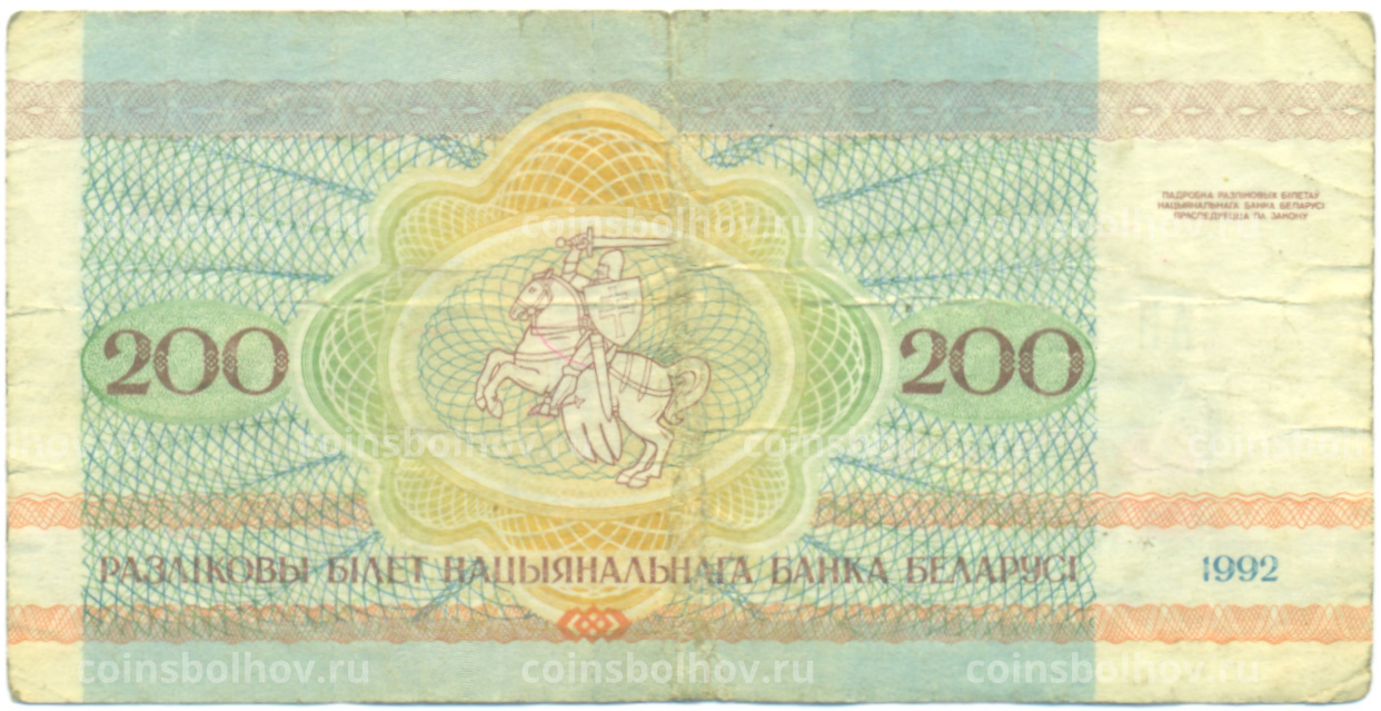 Банкнота 200 рублей 1992 года Белоруссия