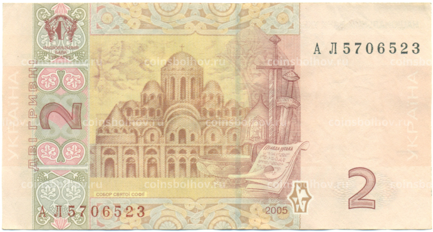 Банкнота 2 гривны 2005 года Украина