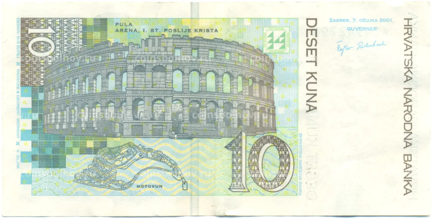 Банкнота 10 кун 2001 года Хорватия