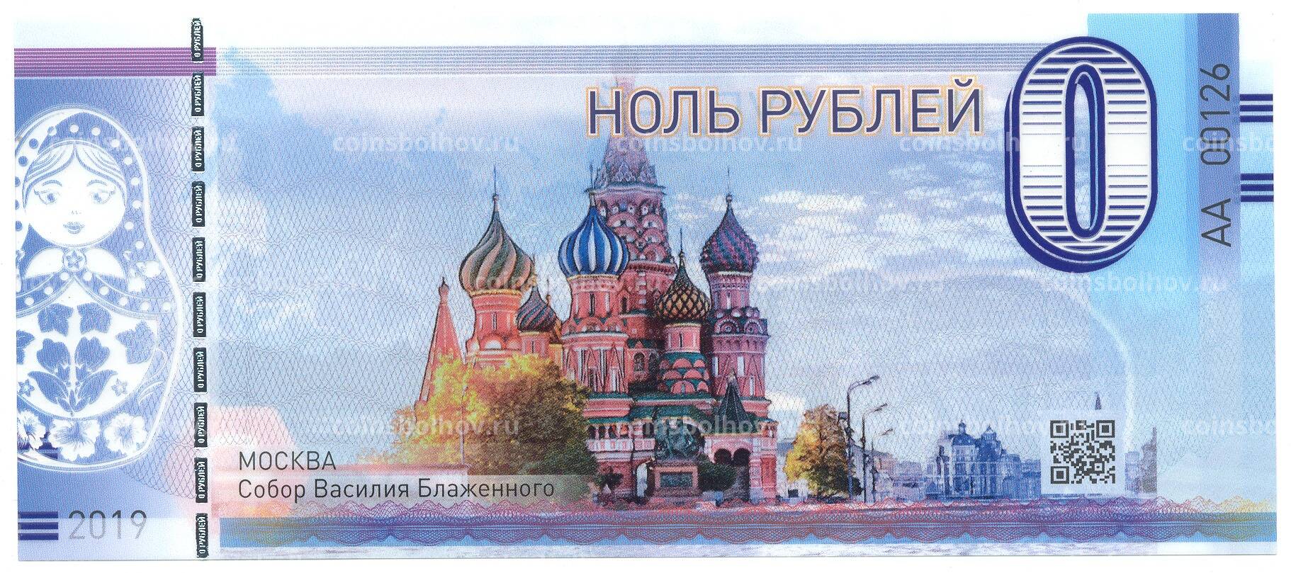 Банкнота 0 рублей 2019 года Москва — Собор Василия Блаженного