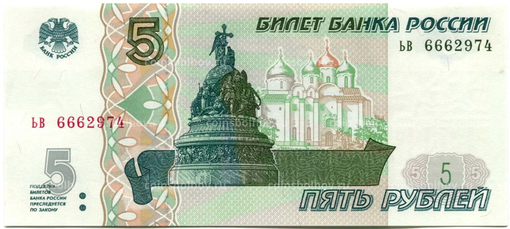 Банкнота 5 рублей образца 1997 года (выпуск 2022-2023 года) — серия ЬВ