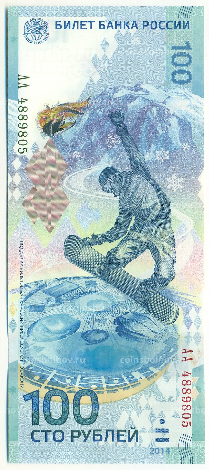 Банкнота 100 рублей 2014 года «XXII зимние Олимпийские Игры 2014 в Сочи» (Серия АА большие)