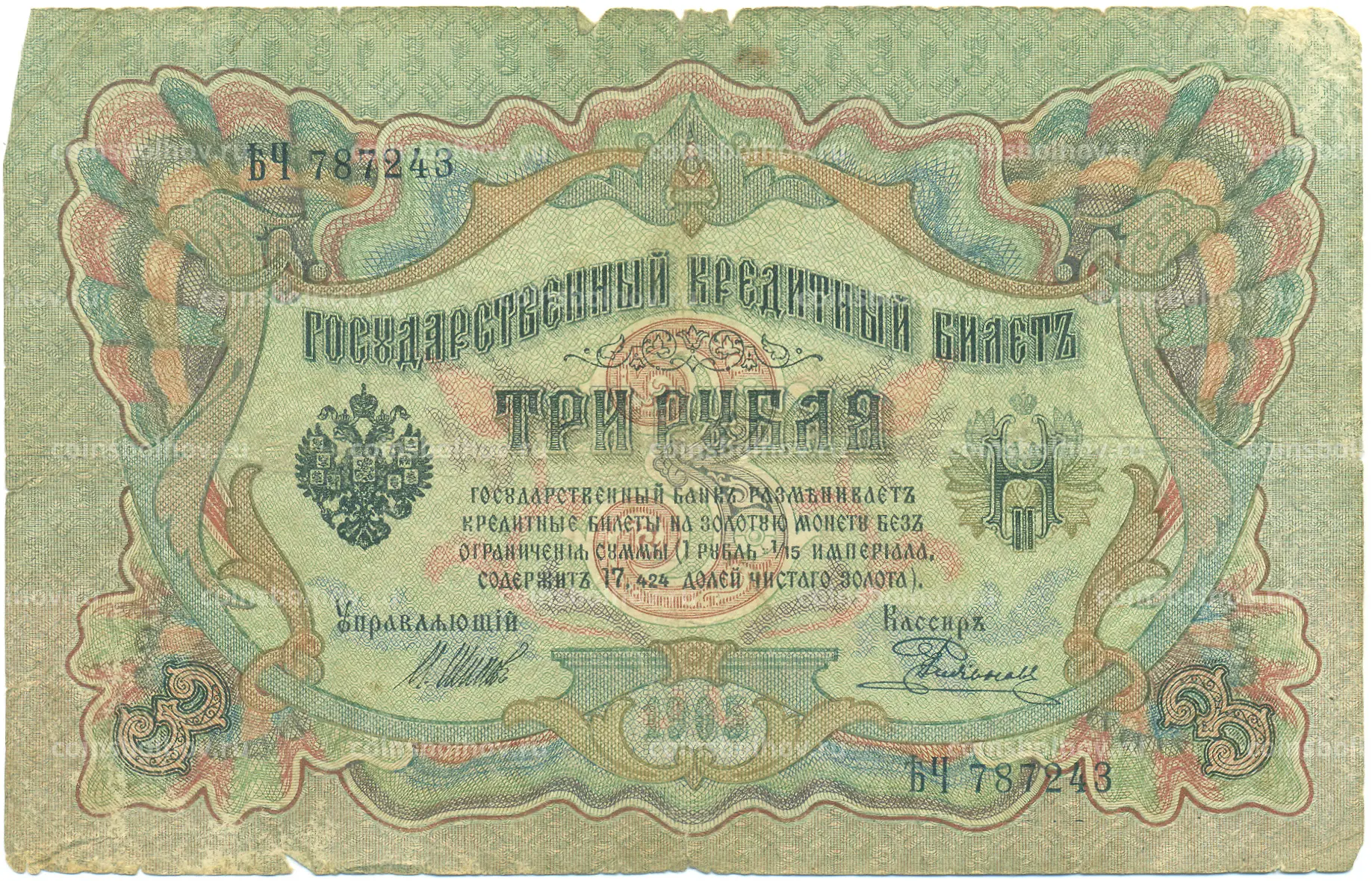 Банкнота 3 рубля 1905 года Шипов / Родионов