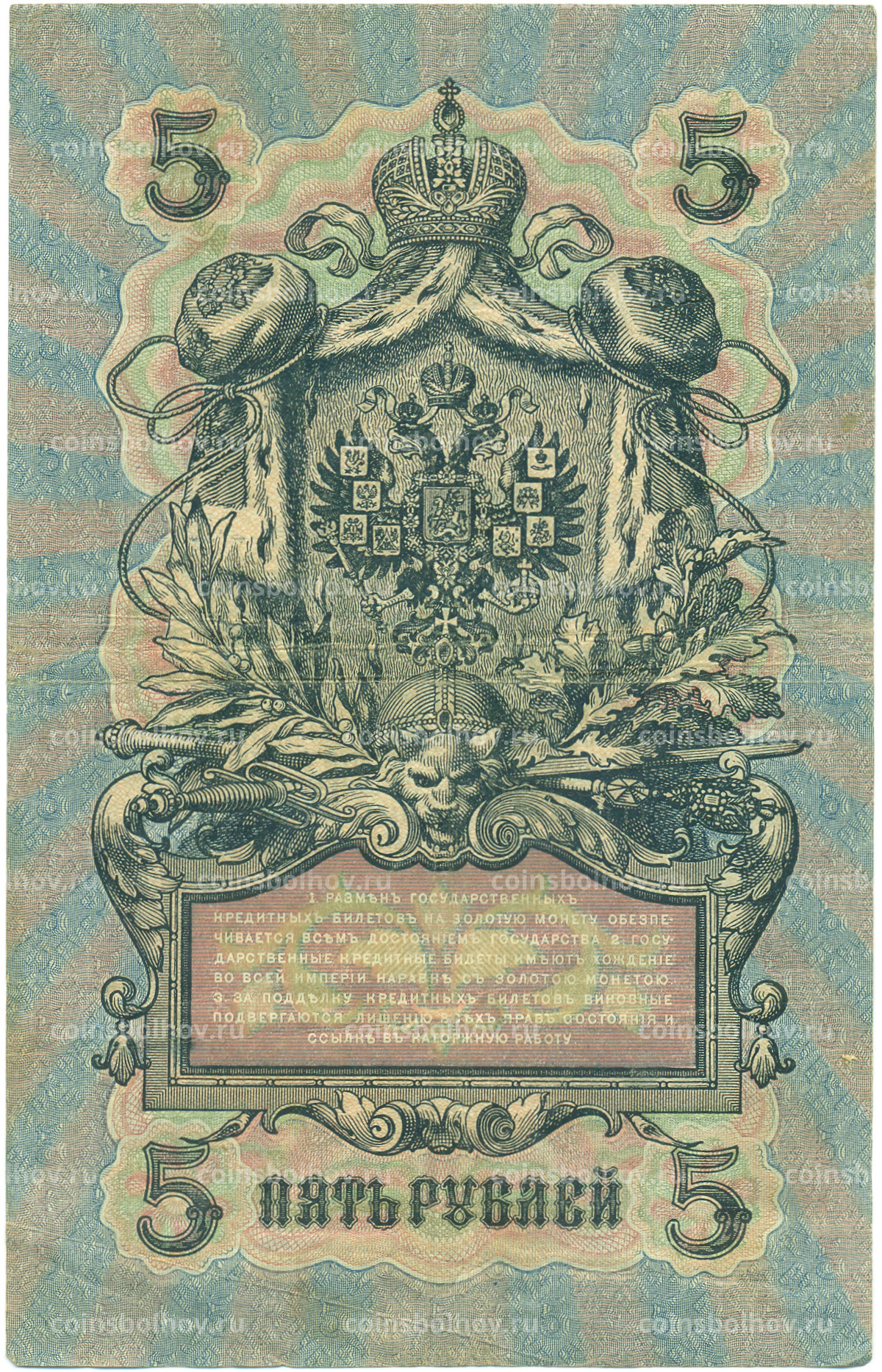 Банкнота 5 рублей 1909 года Шипов / Богатырев