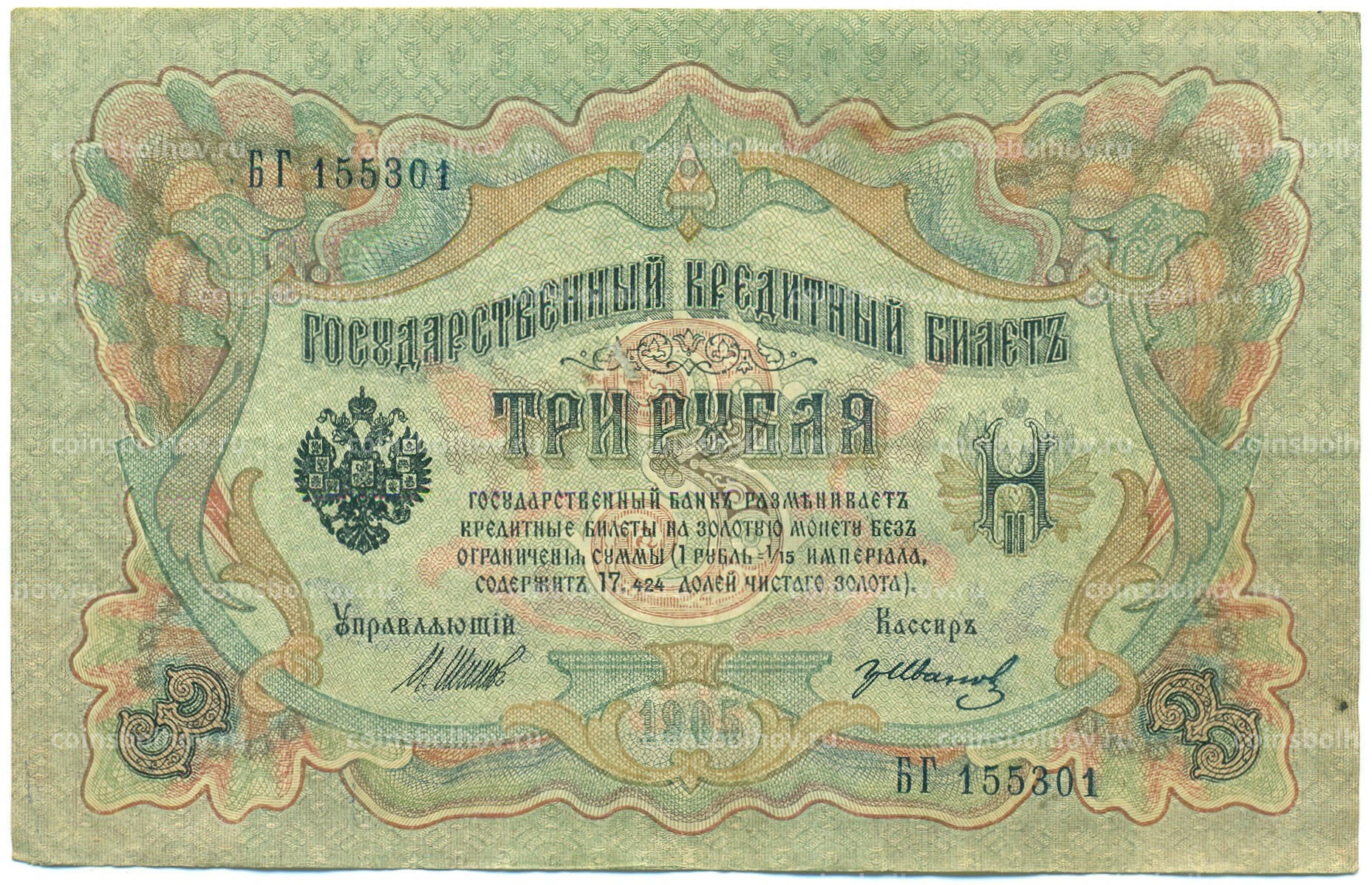 Банкнота 3 рубля 1905 года Шипов / Иванов