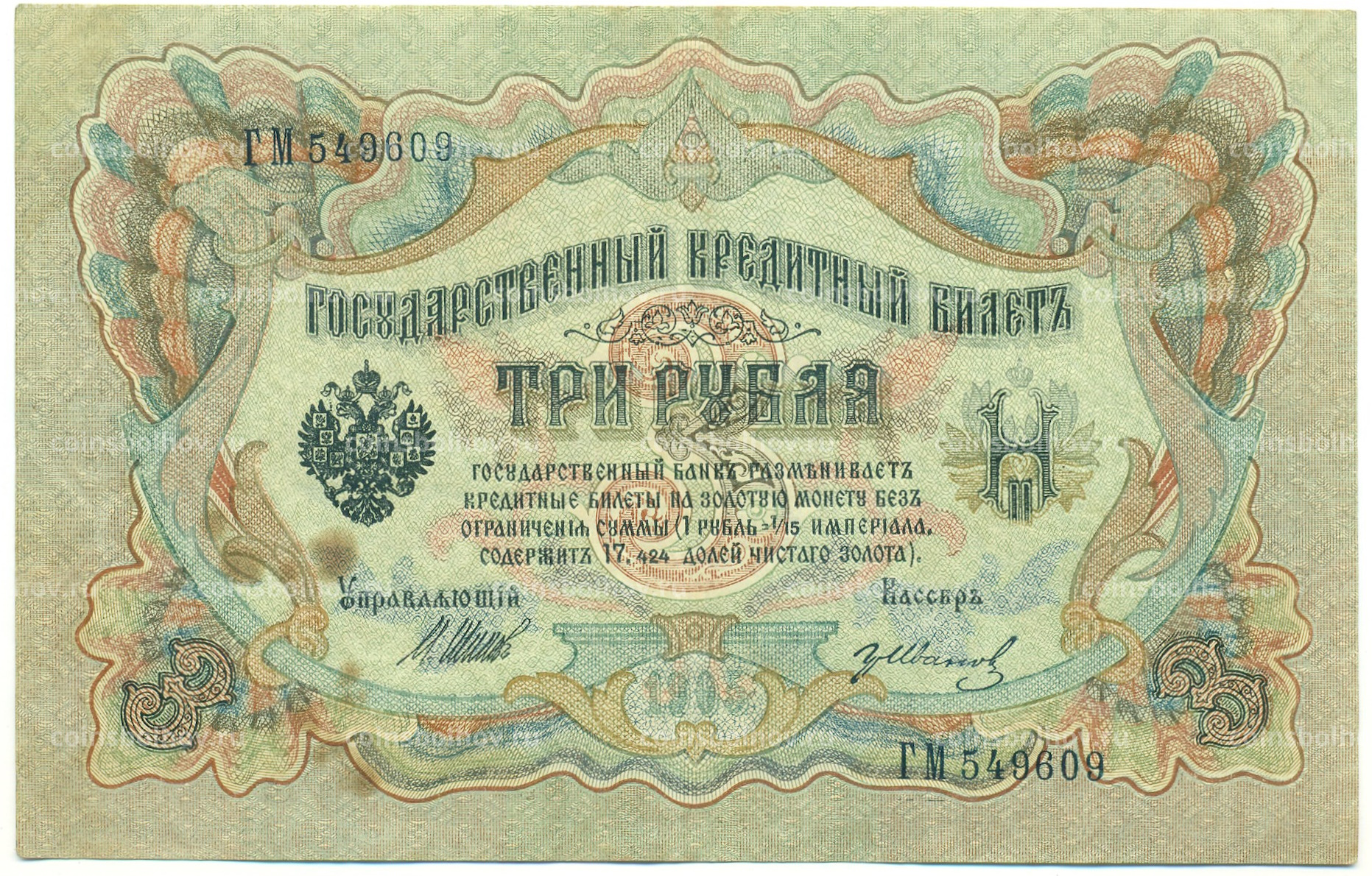 Банкнота 3 рубля 1905 года Шипов / Иванов