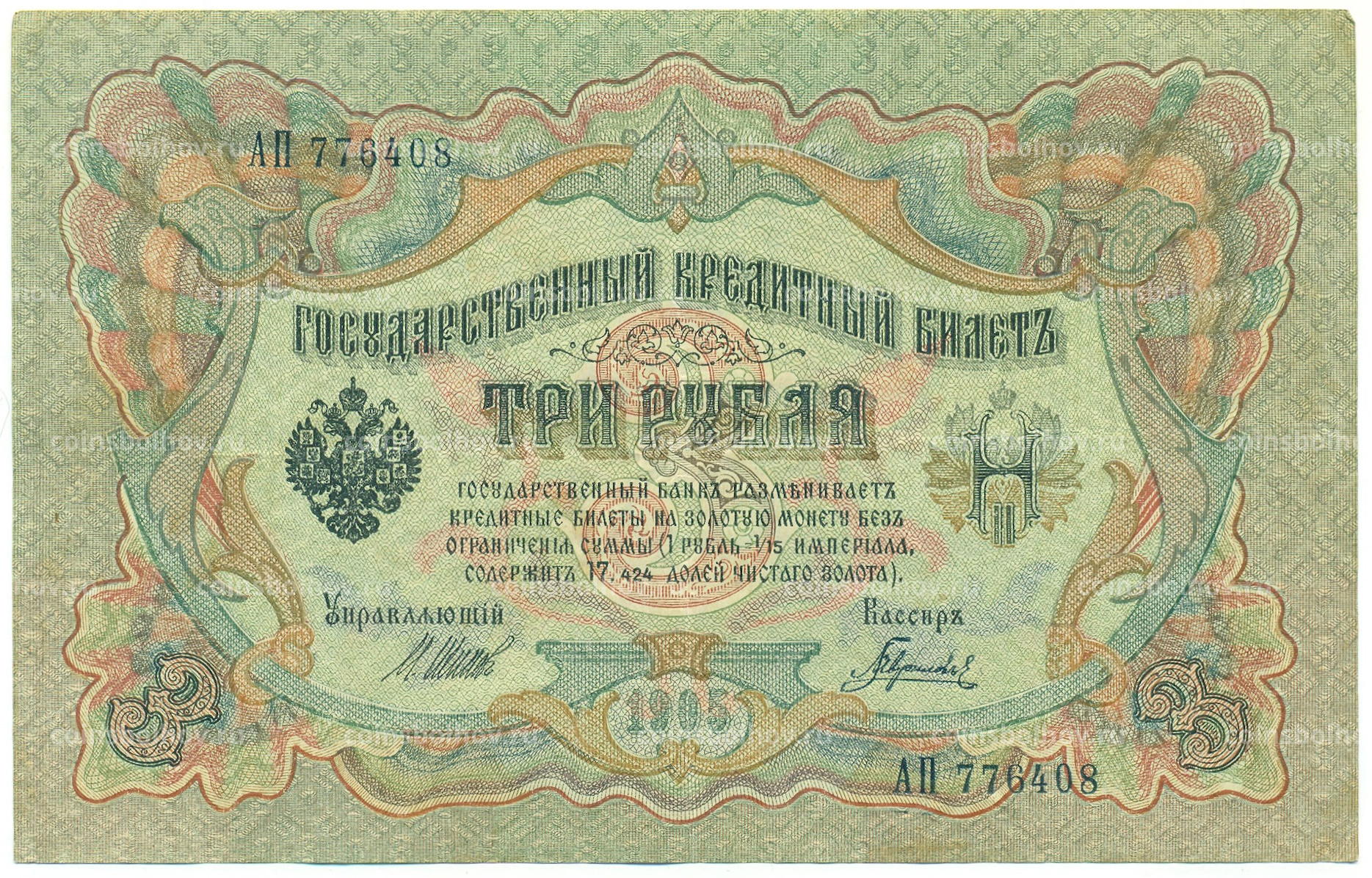 Банкнота 3 рубля 1905 года Шипов / Гаврилов