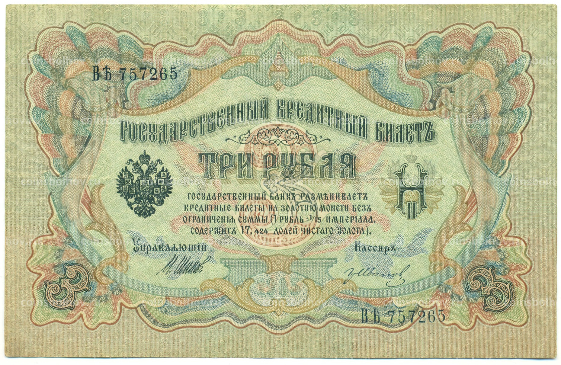 Банкнота 3 рубля 1905 года Шипов / Иванов