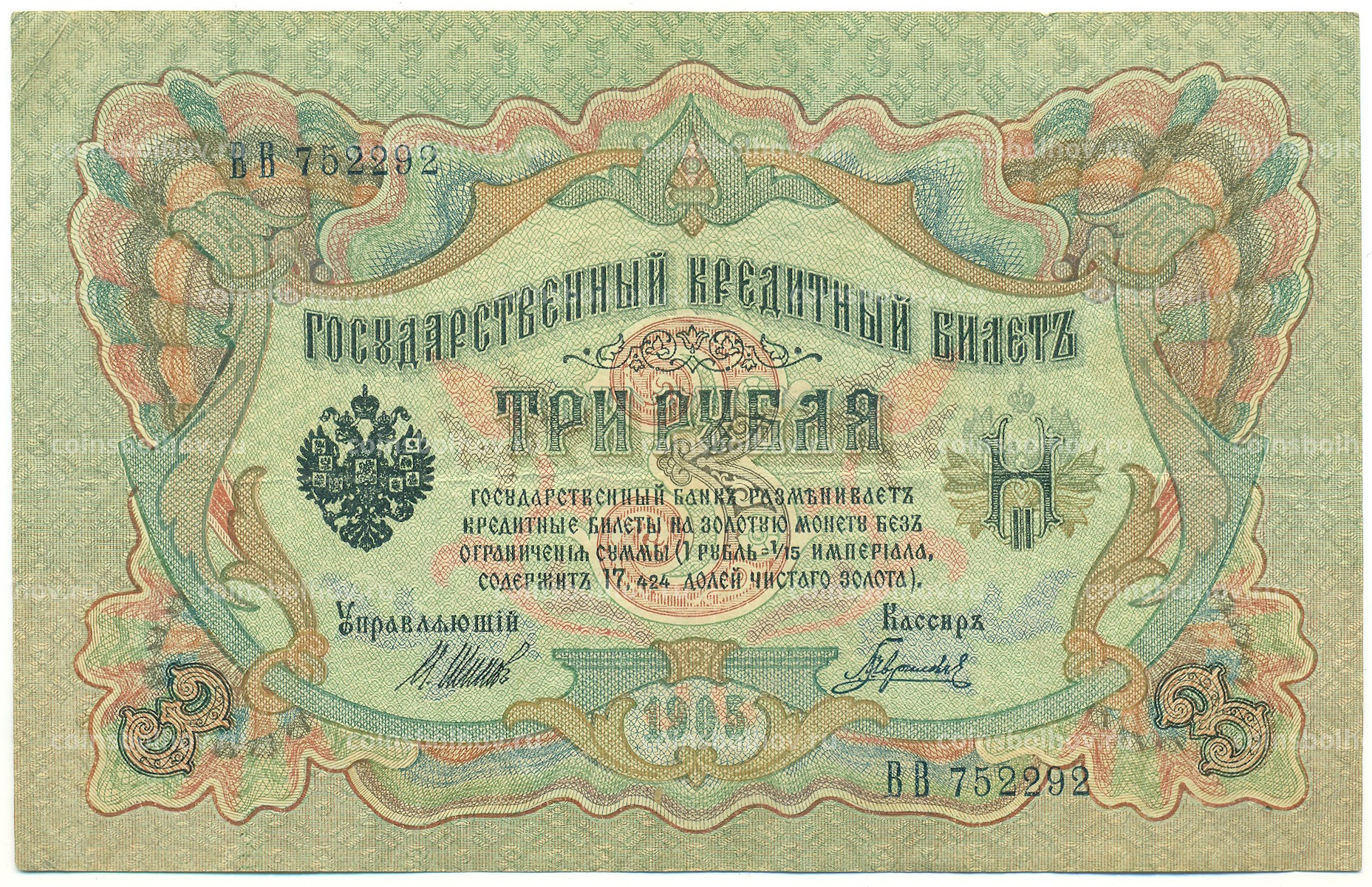 Банкнота 3 рубля 1905 года Шипов / Гаврилов
