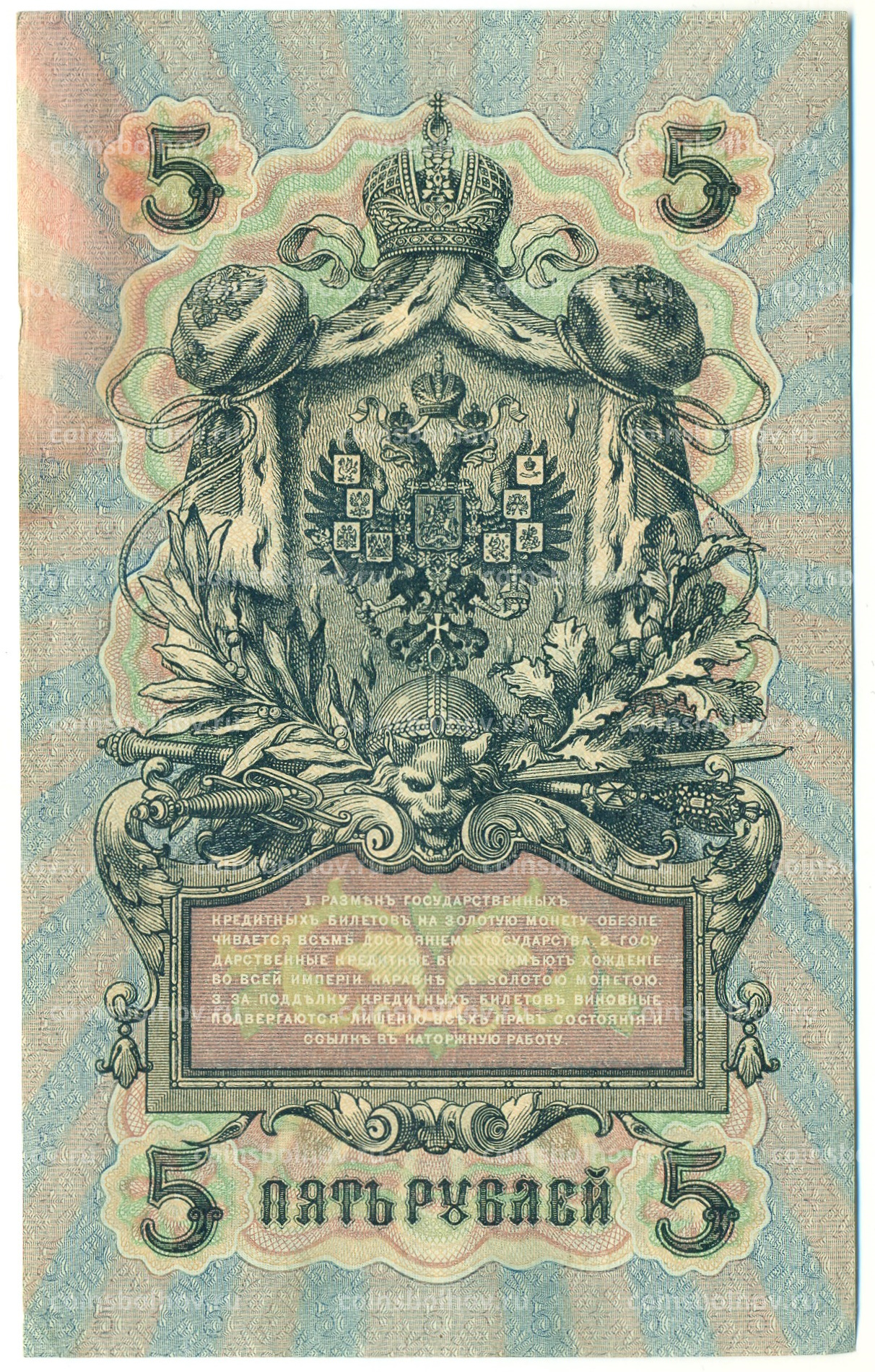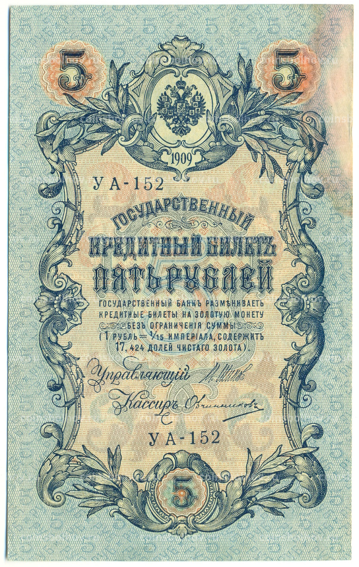 Банкнота 5 рублей 1909 года Шипов / Овчинников