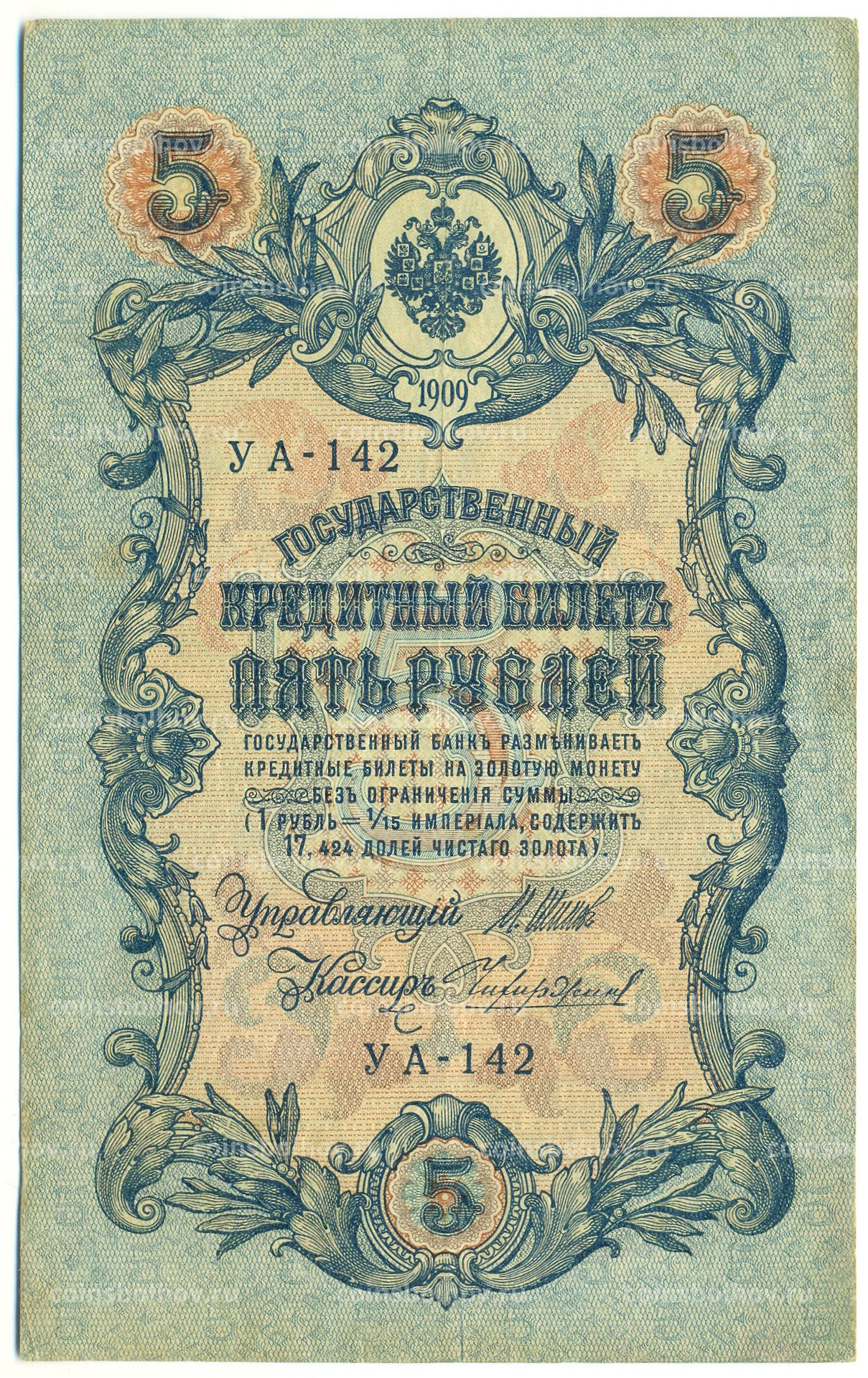 Банкнота 5 рублей 1909 года Шипов / Чихиржин