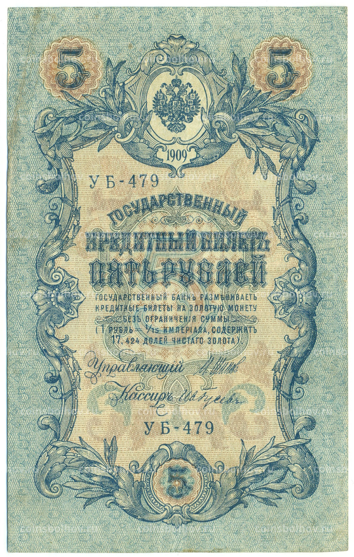 Банкнота 5 рублей 1909 года Шипов / Гусев