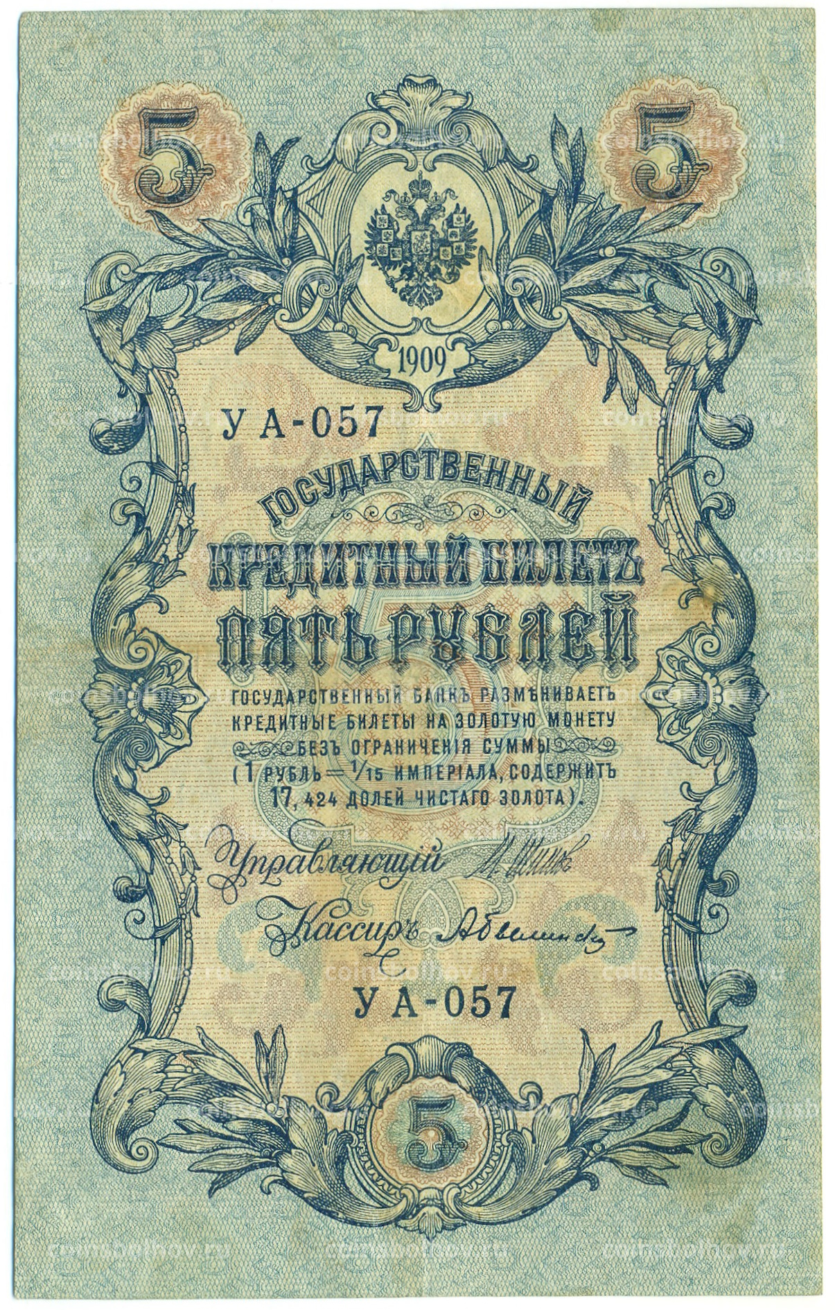 Банкнота 5 рублей 1909 года Шипов / Былинский