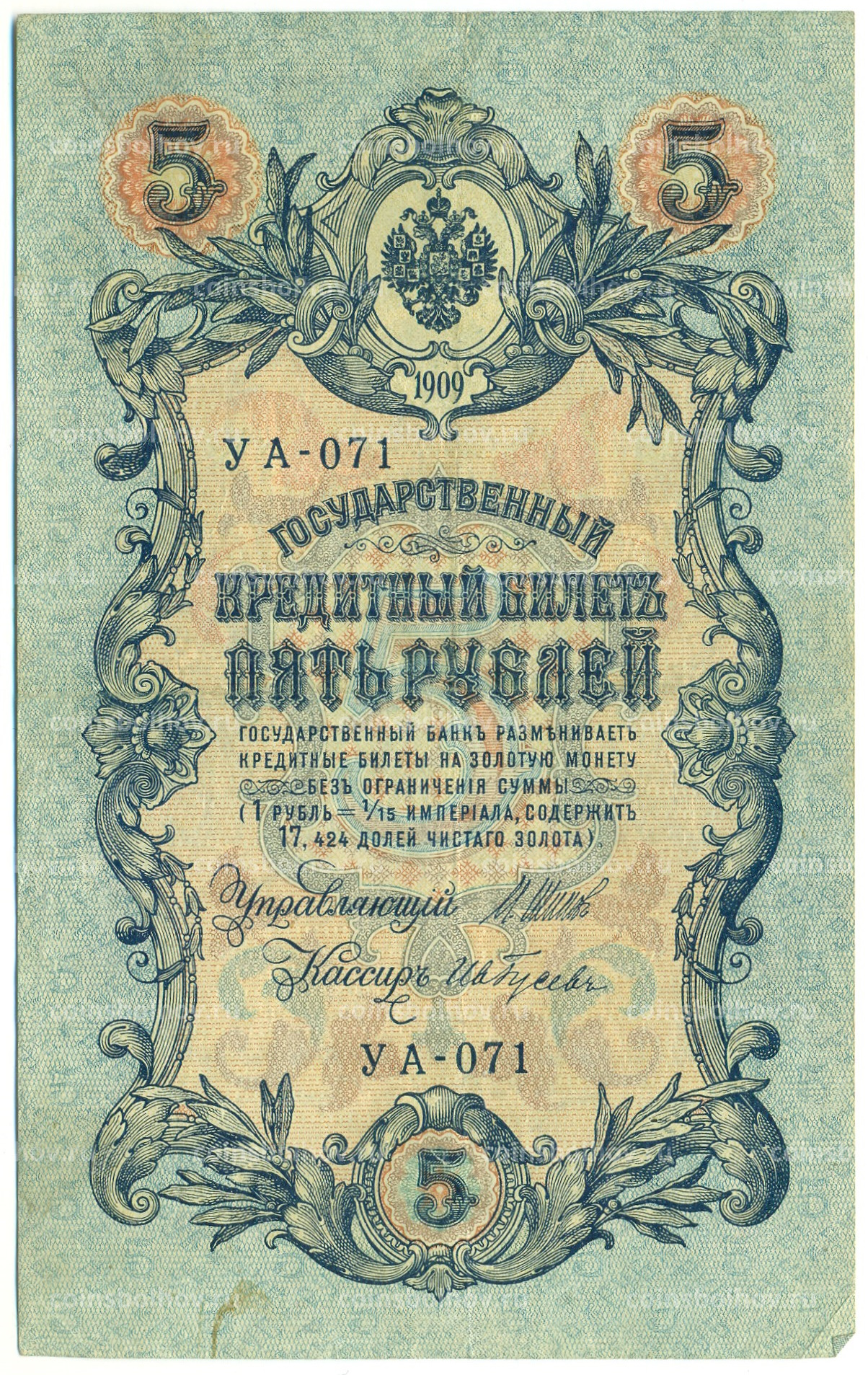Банкнота 5 рублей 1909 года Шипов / Гусев