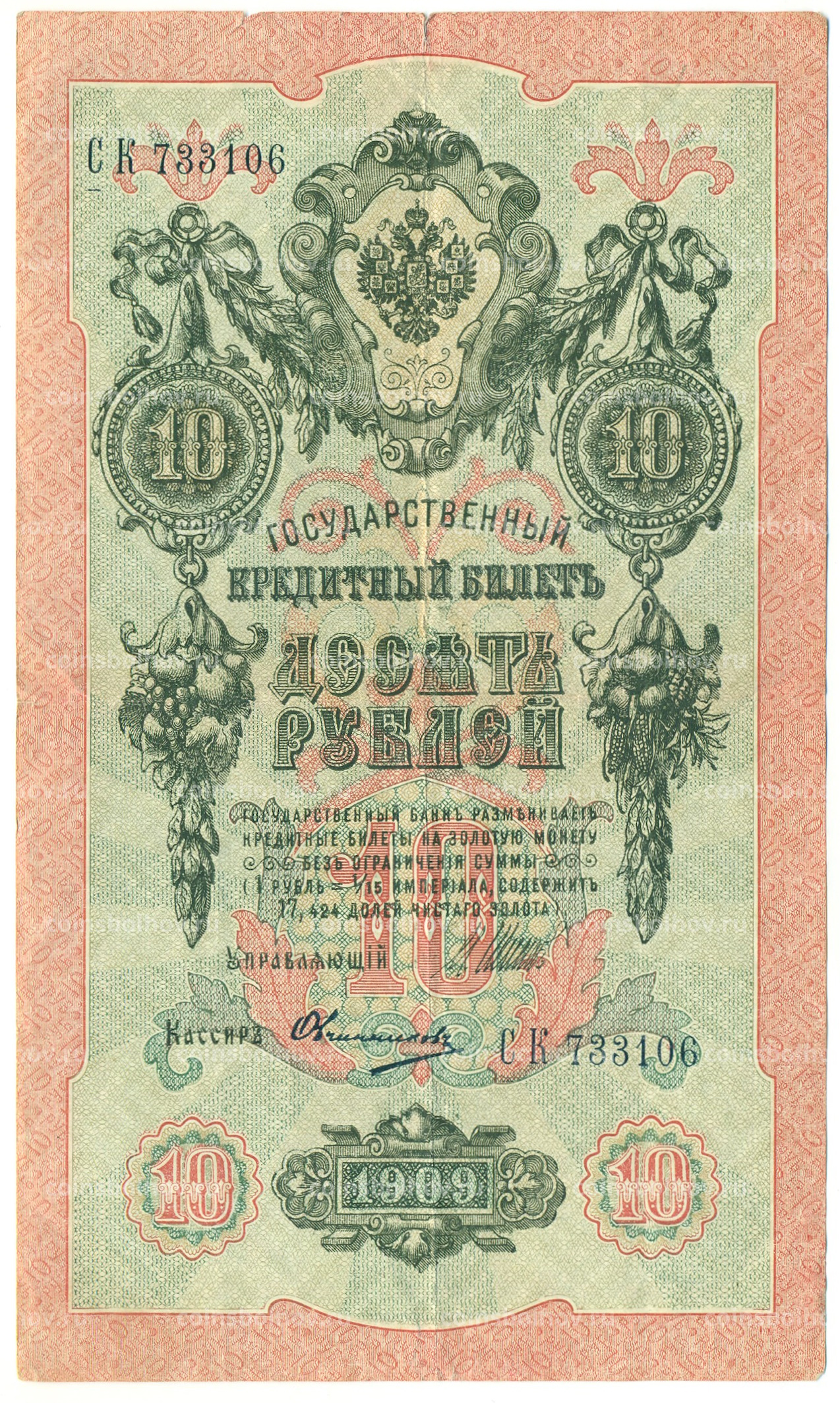 Банкнота 10 рублей 1909 года Шипов / Овчинников