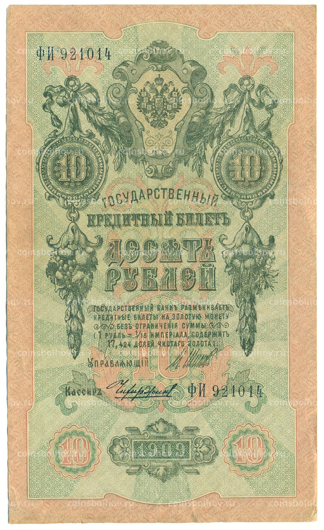 Банкнота 10 рублей 1909 года Шипов / Чихиржин
