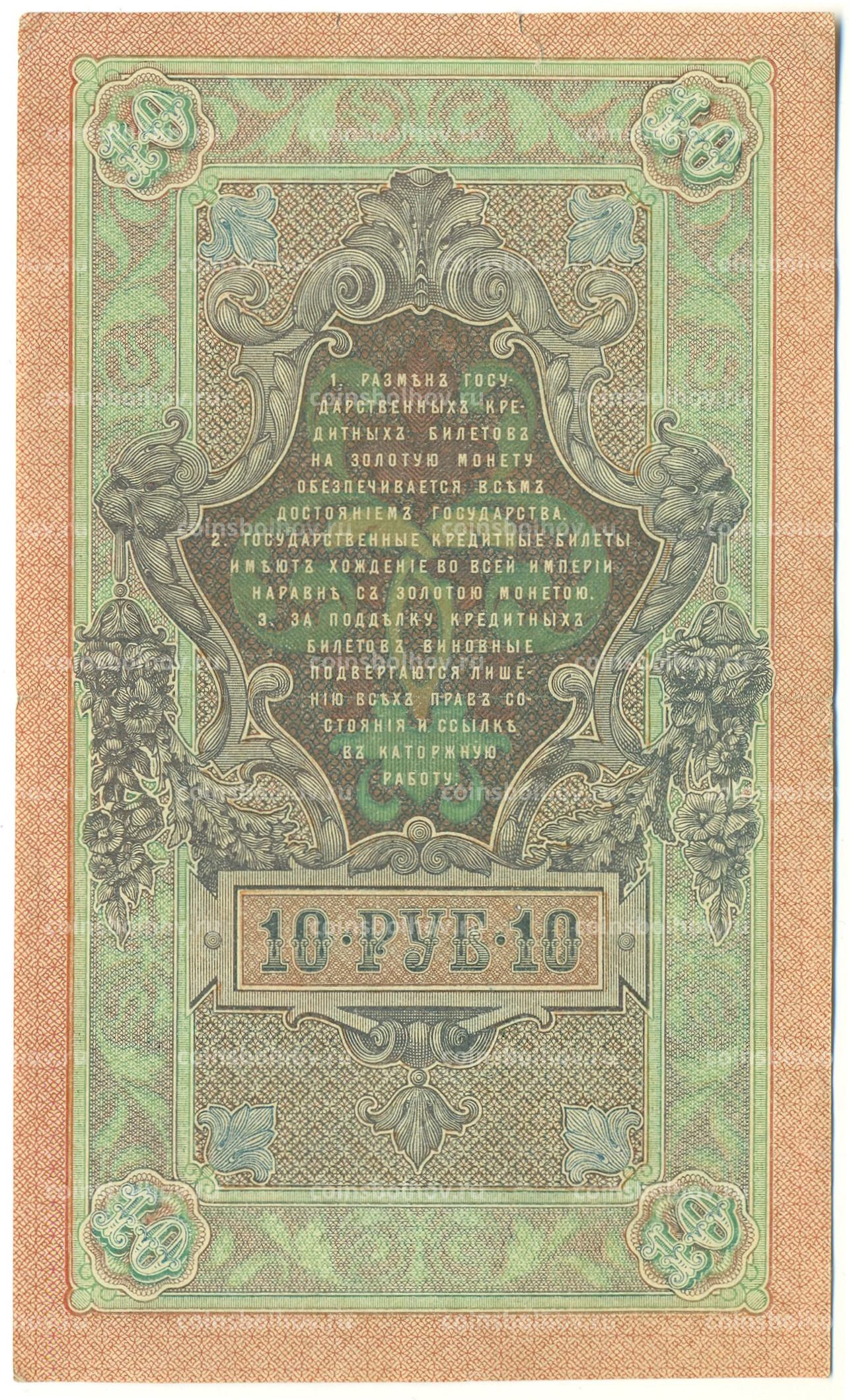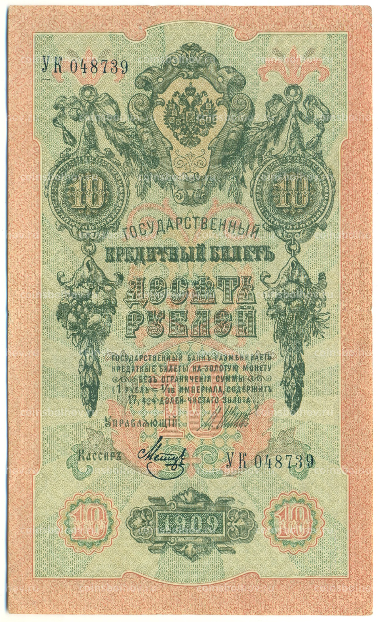 Банкнота 10 рублей 1909 года Шипов / Метц