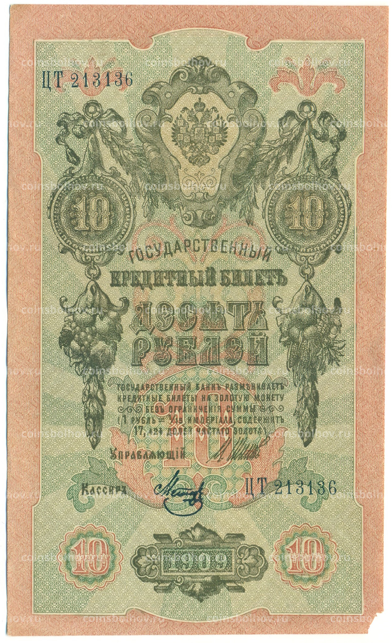 Банкнота 10 рублей 1909 года Шипов / Метц