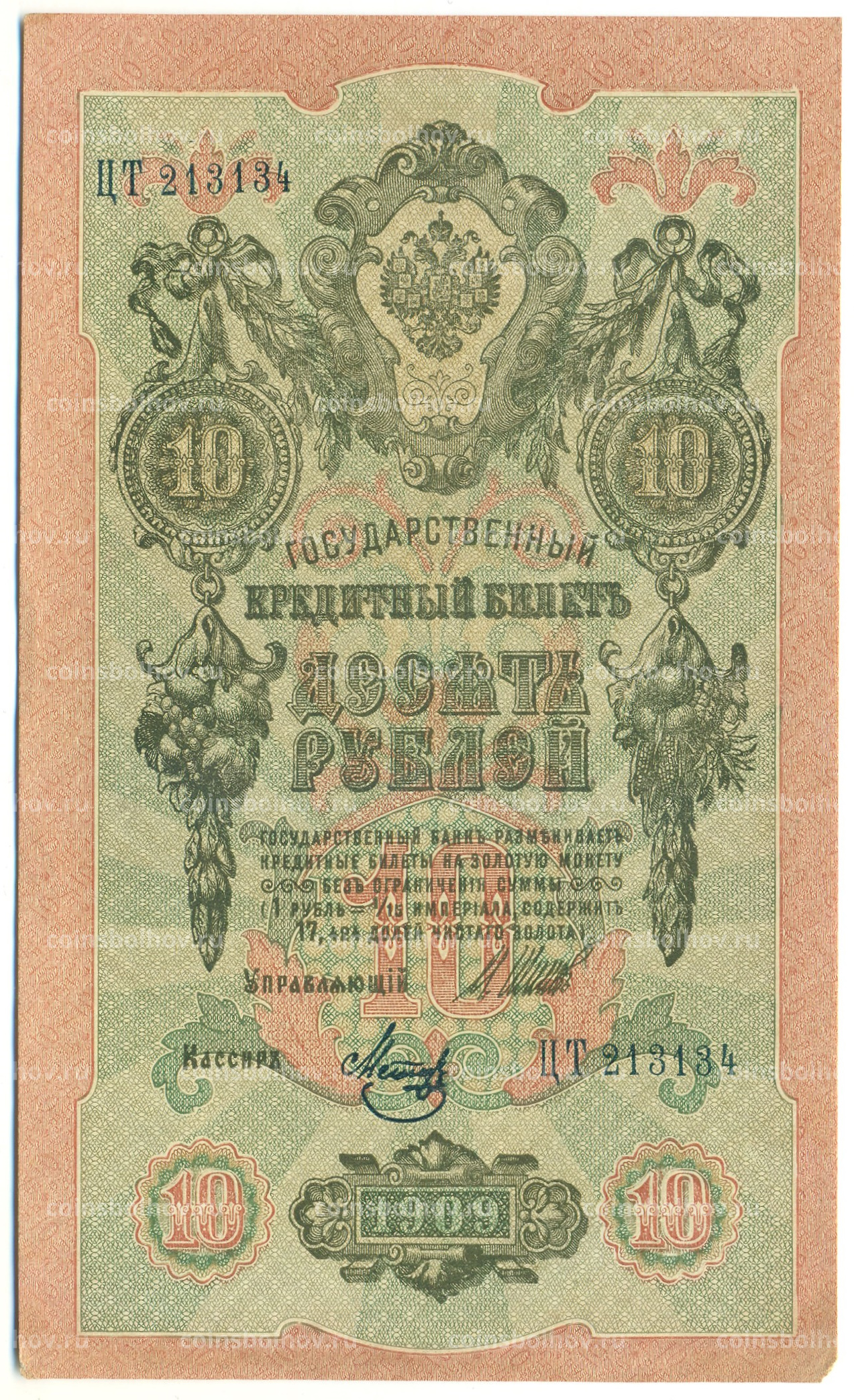 Банкнота 10 рублей 1909 года Шипов / Метц