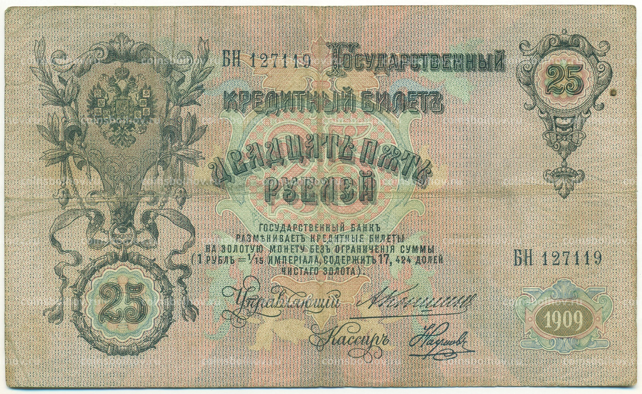 Банкнота 25 рублей 1909 года Коншин / Наумов