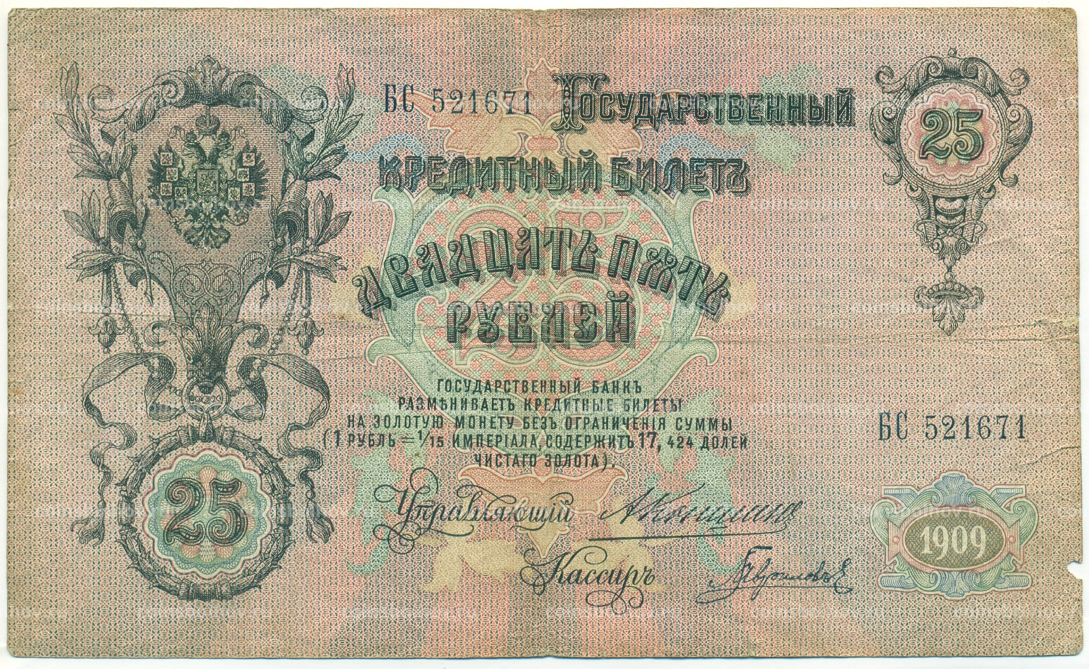Банкнота 25 рублей 1909 года Коншин / Гаврилов