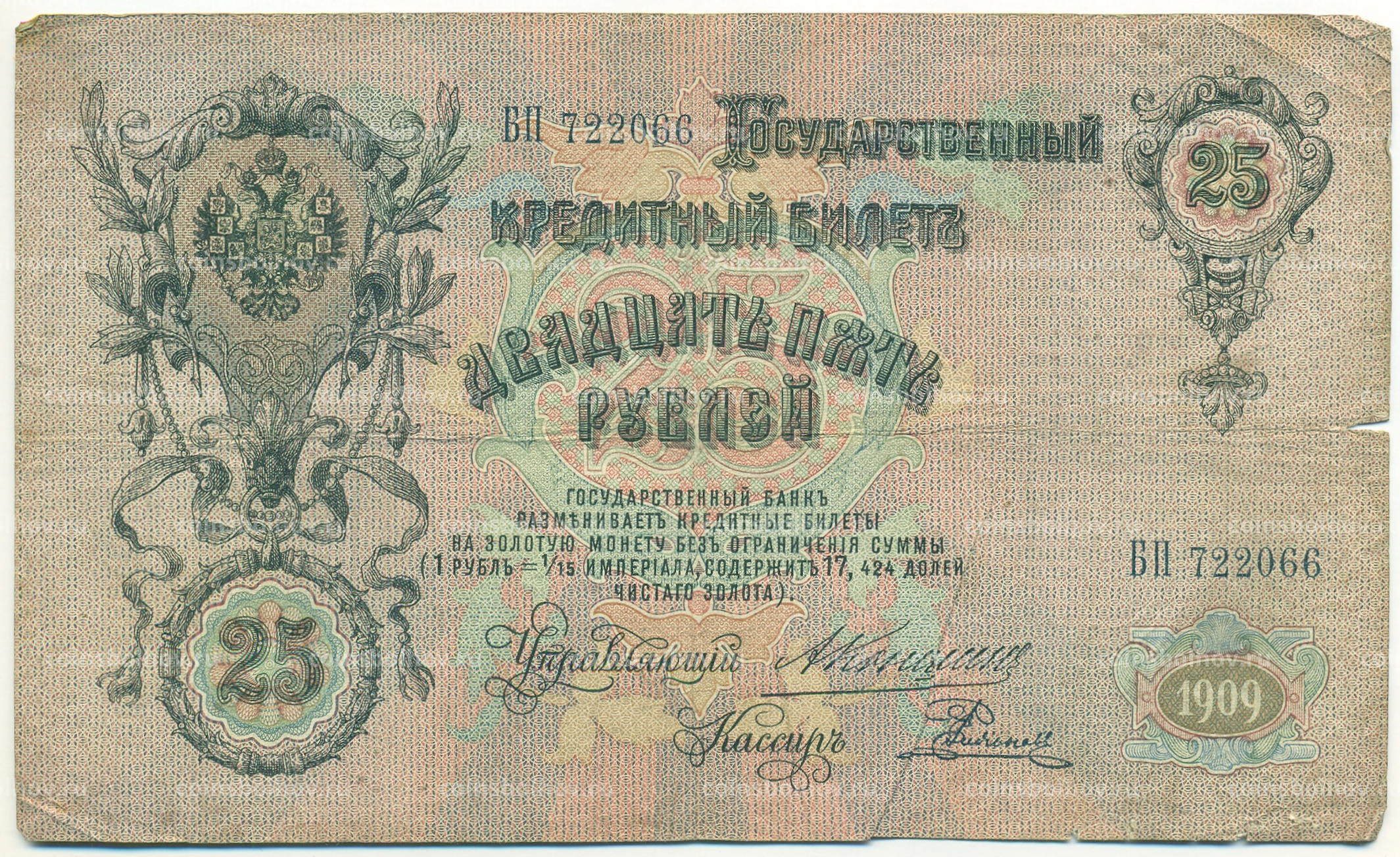 Банкнота 25 рублей 1909 года Коншин / Родионов