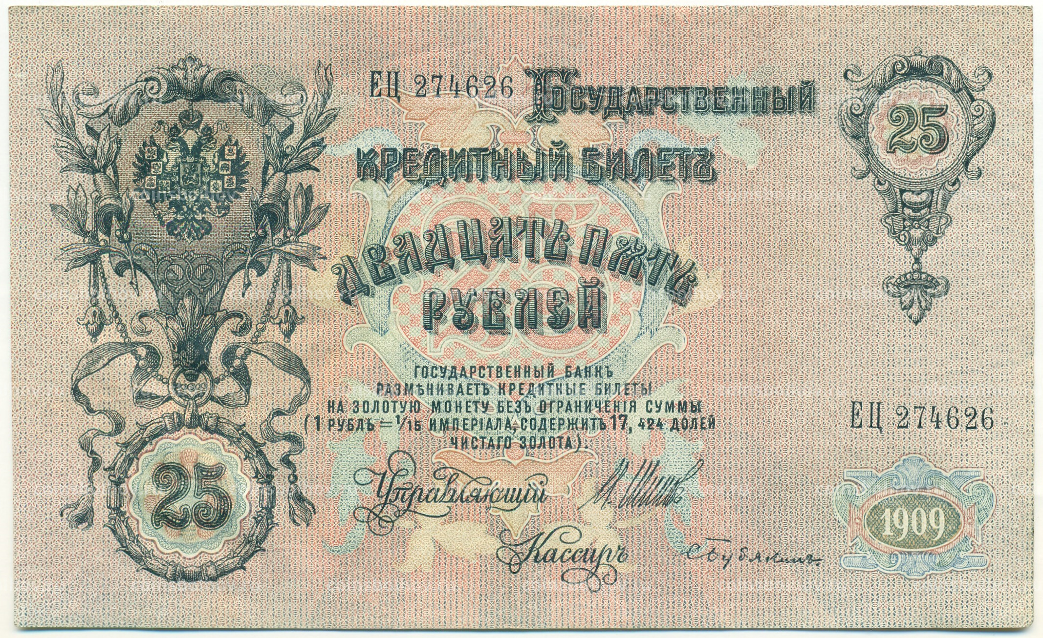 Банкнота 25 рублей 1909 года Шипов / Бубякин
