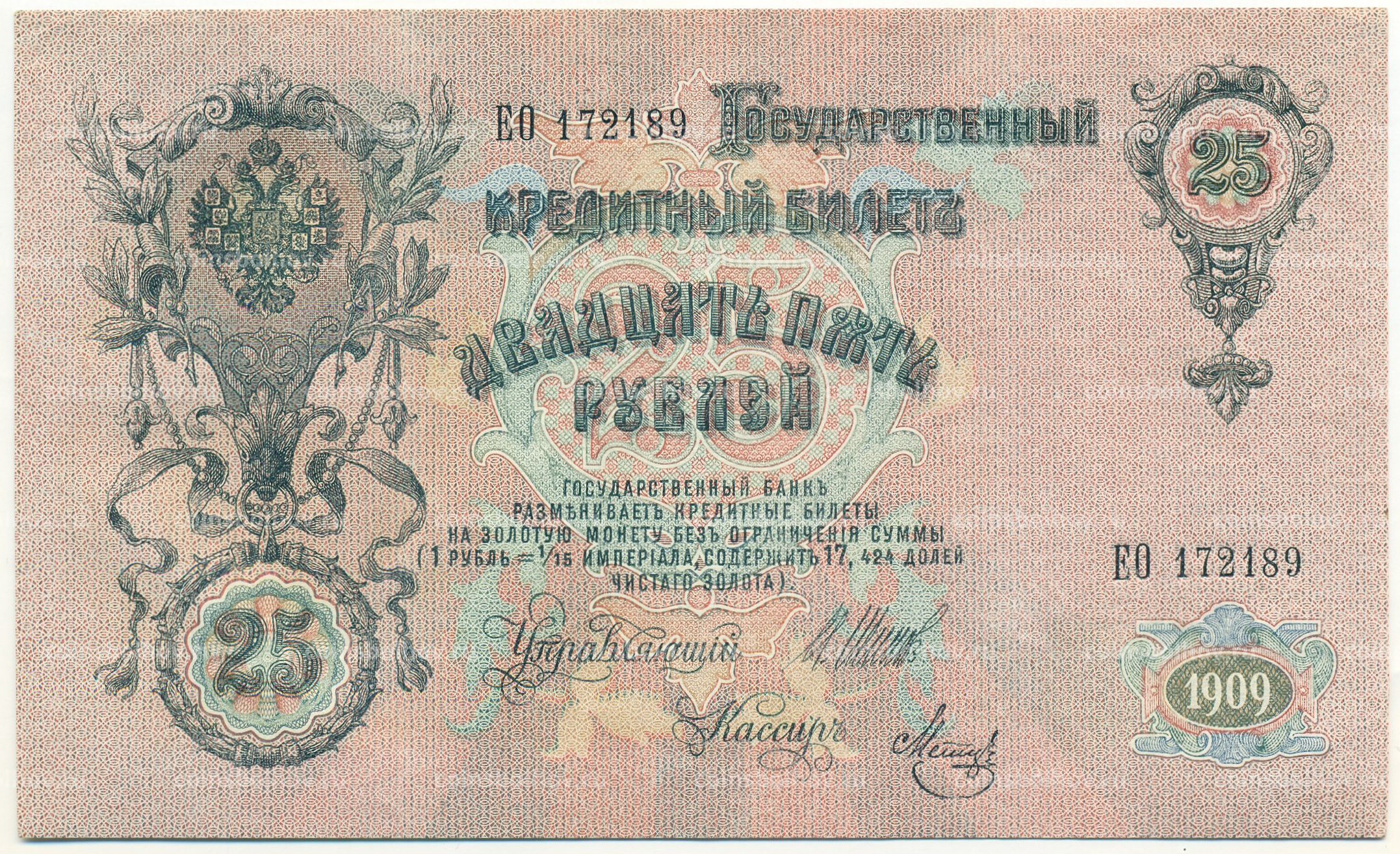 Банкнота 25 рублей 1909 года Шипов / Метц