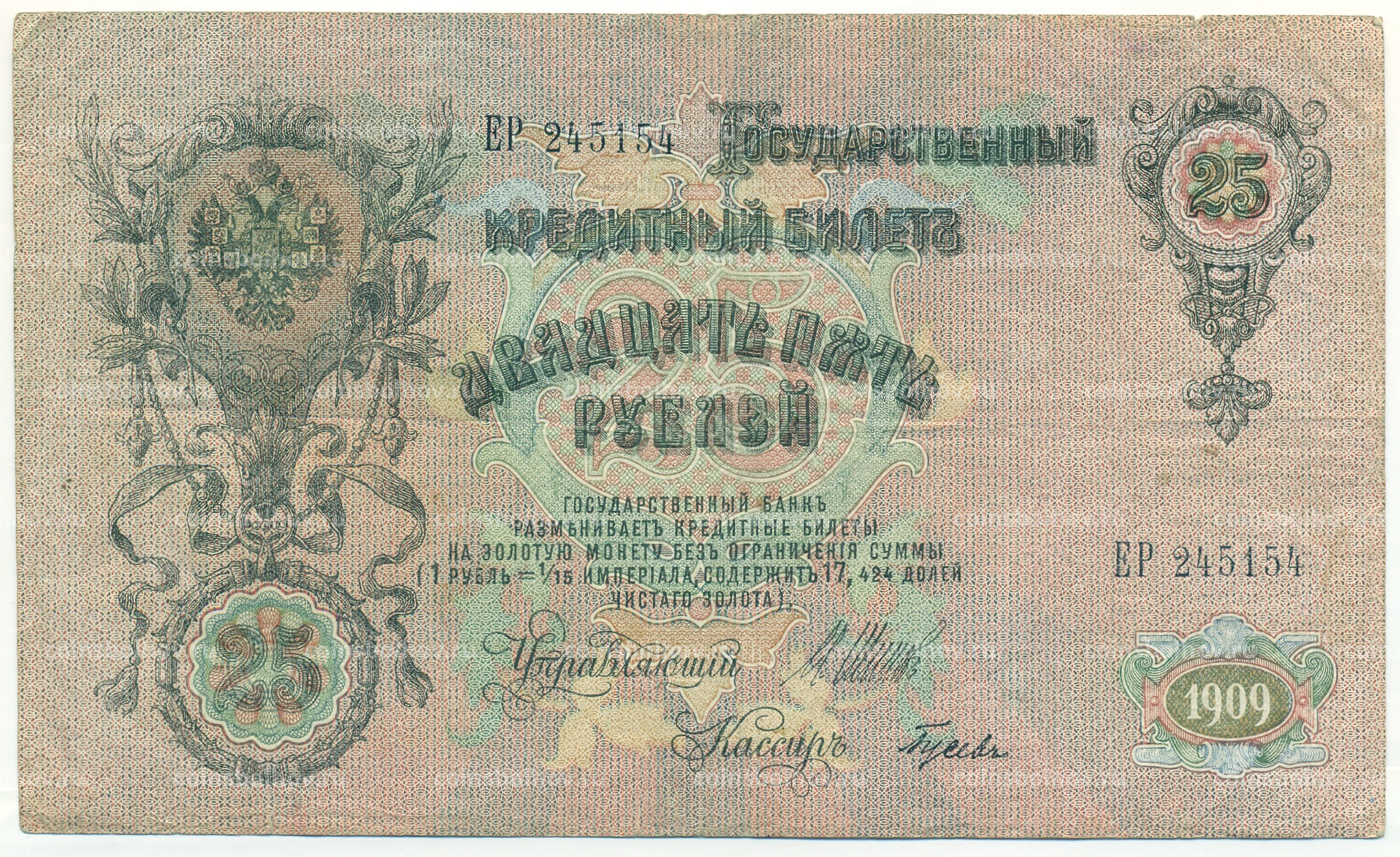 Банкнота 25 рублей 1909 года Шипов / Гусев