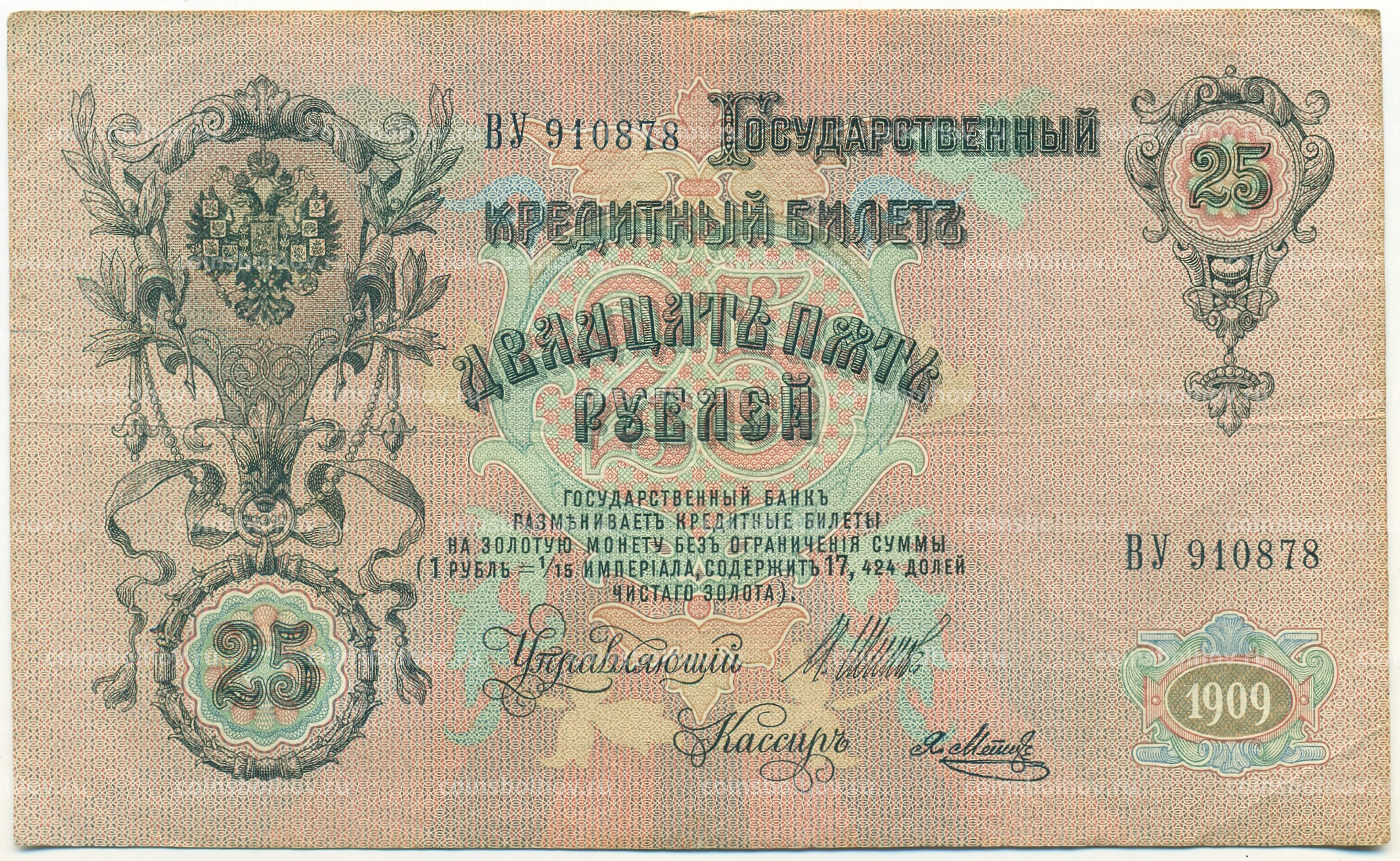 Банкнота 25 рублей 1909 года Шипов / Метц