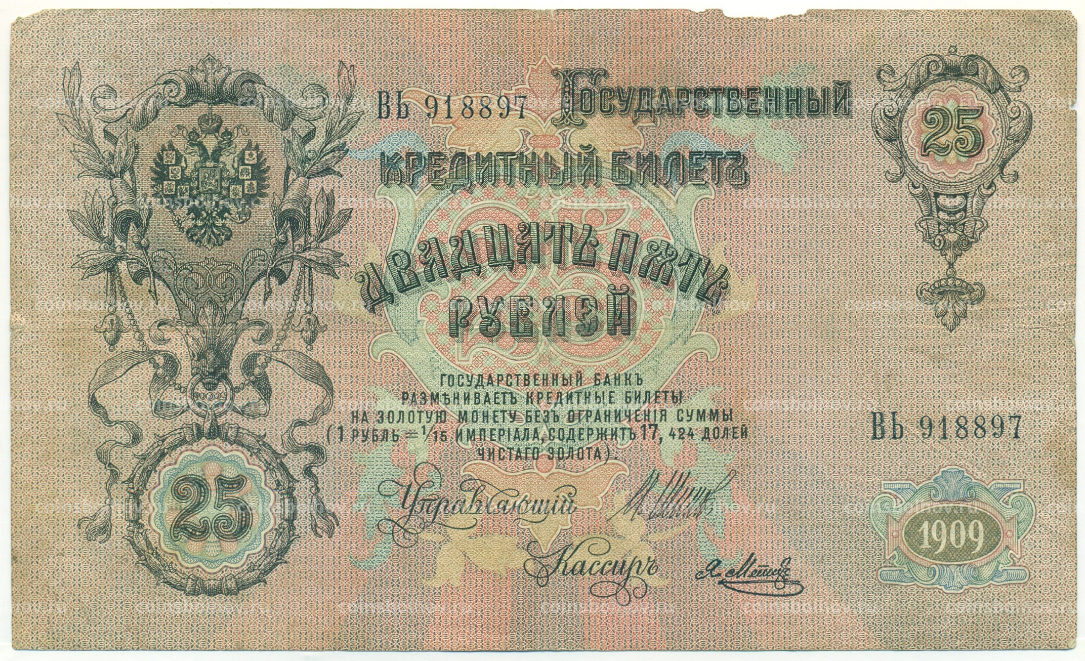 Банкнота 25 рублей 1909 года Шипов / Метц