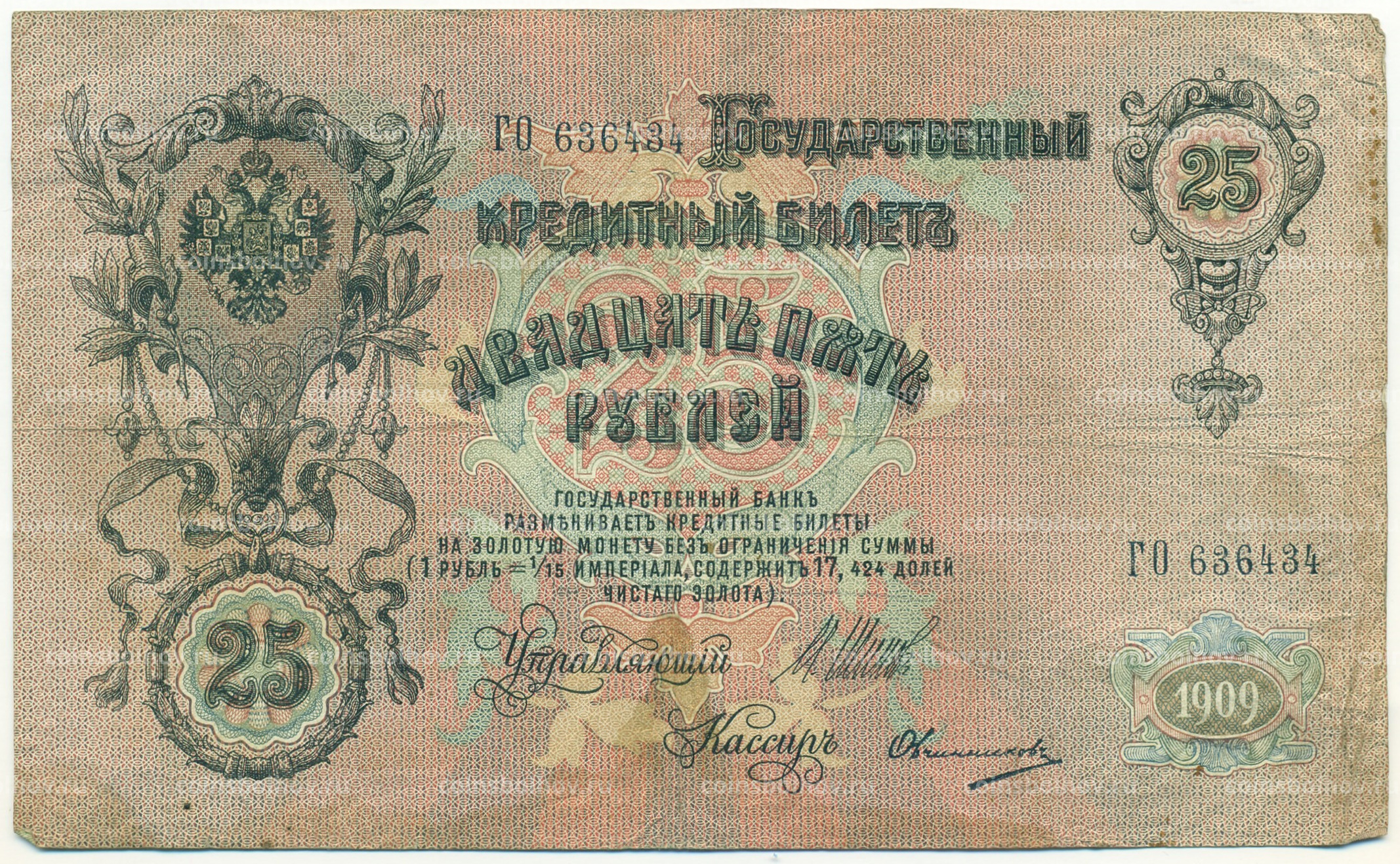 Банкнота 25 рублей 1909 года Шипов / Овчинников