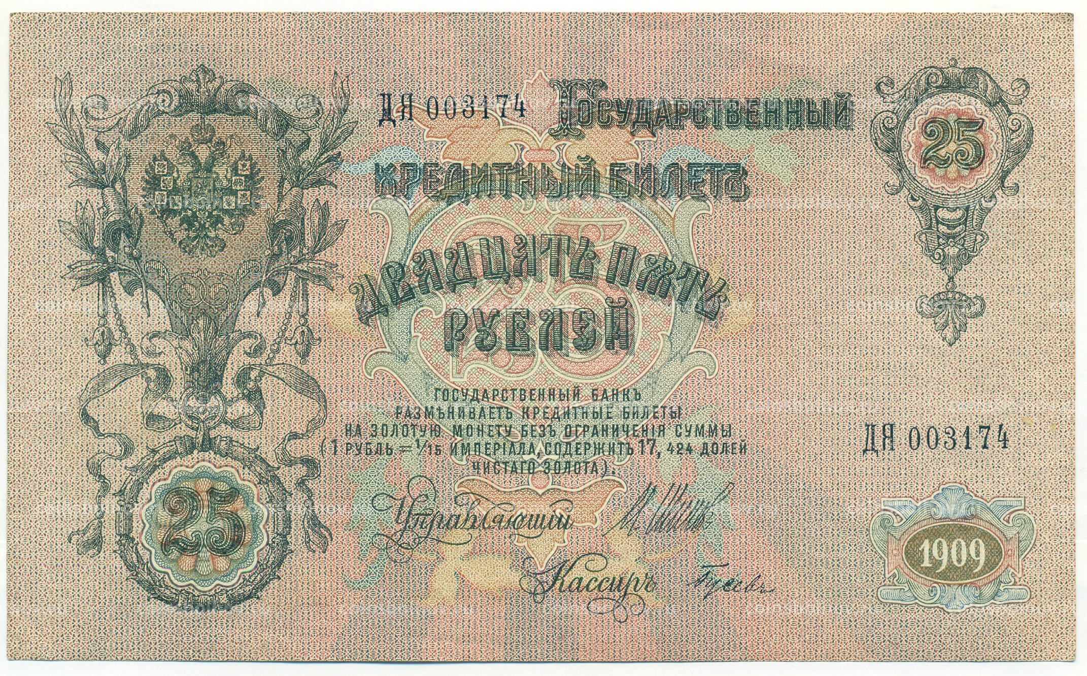Банкнота 25 рублей 1909 года Шипов / Гусев