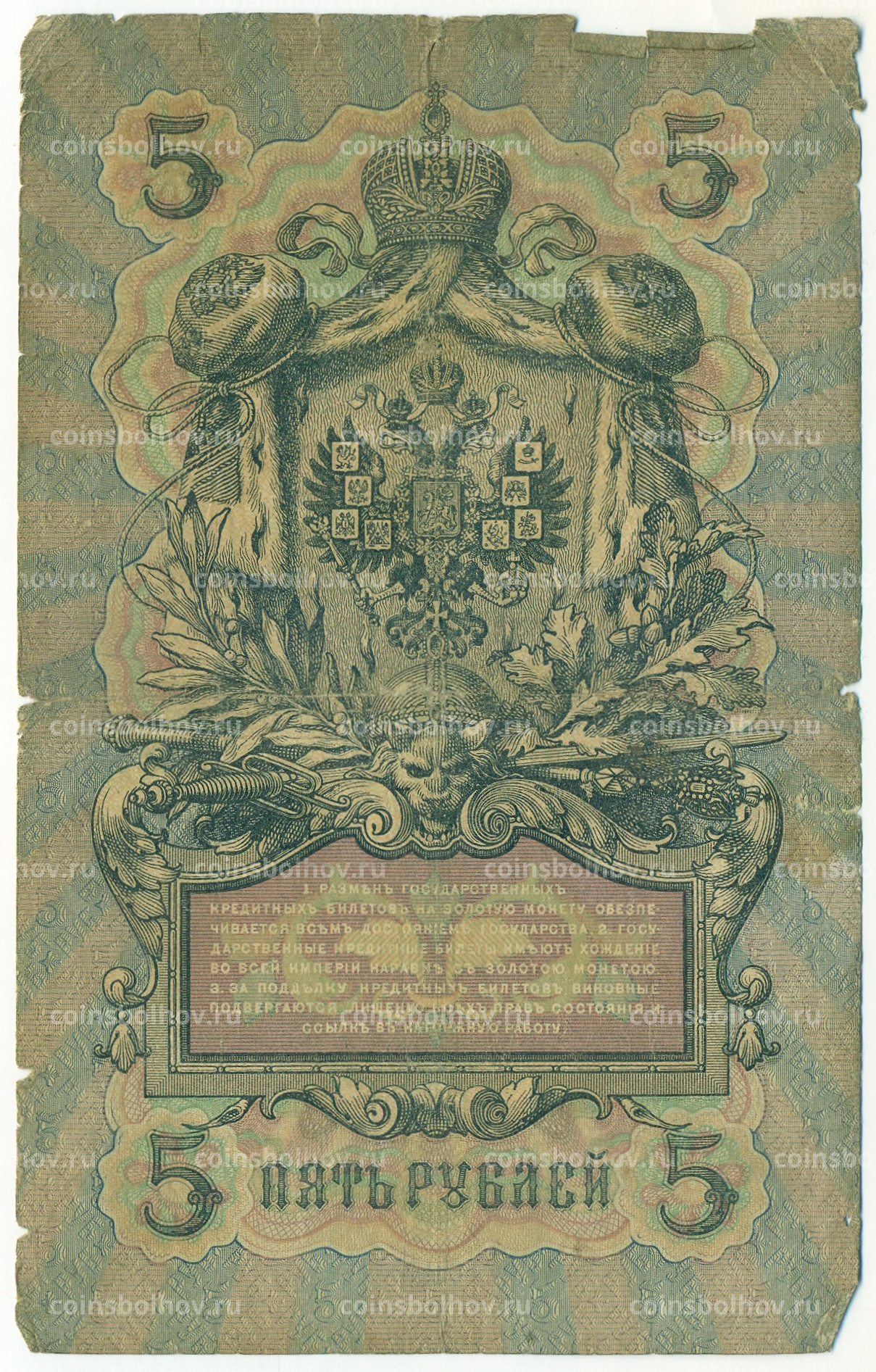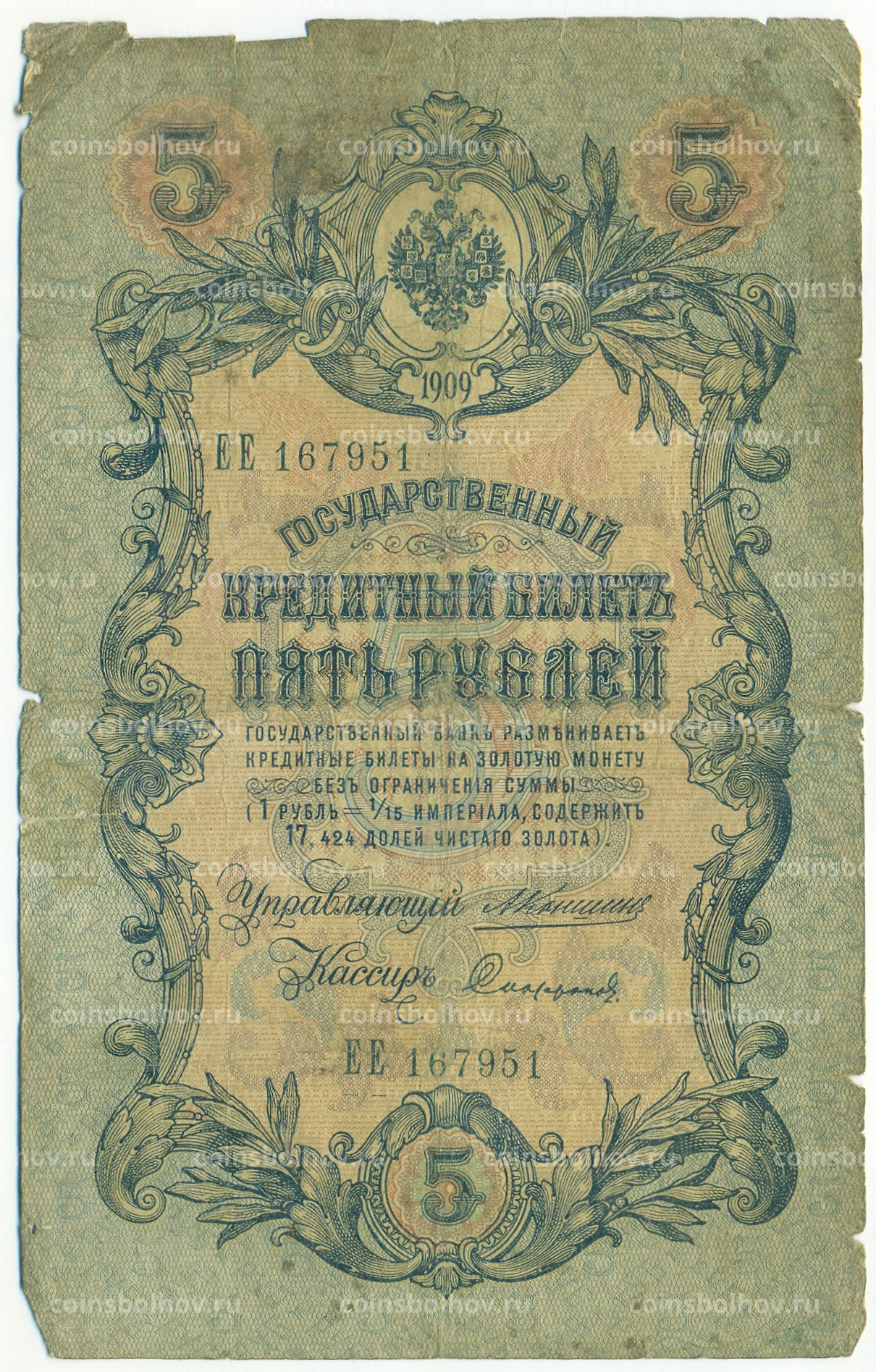 Банкнота 5 рублей 1909 года Коншин / Софронов