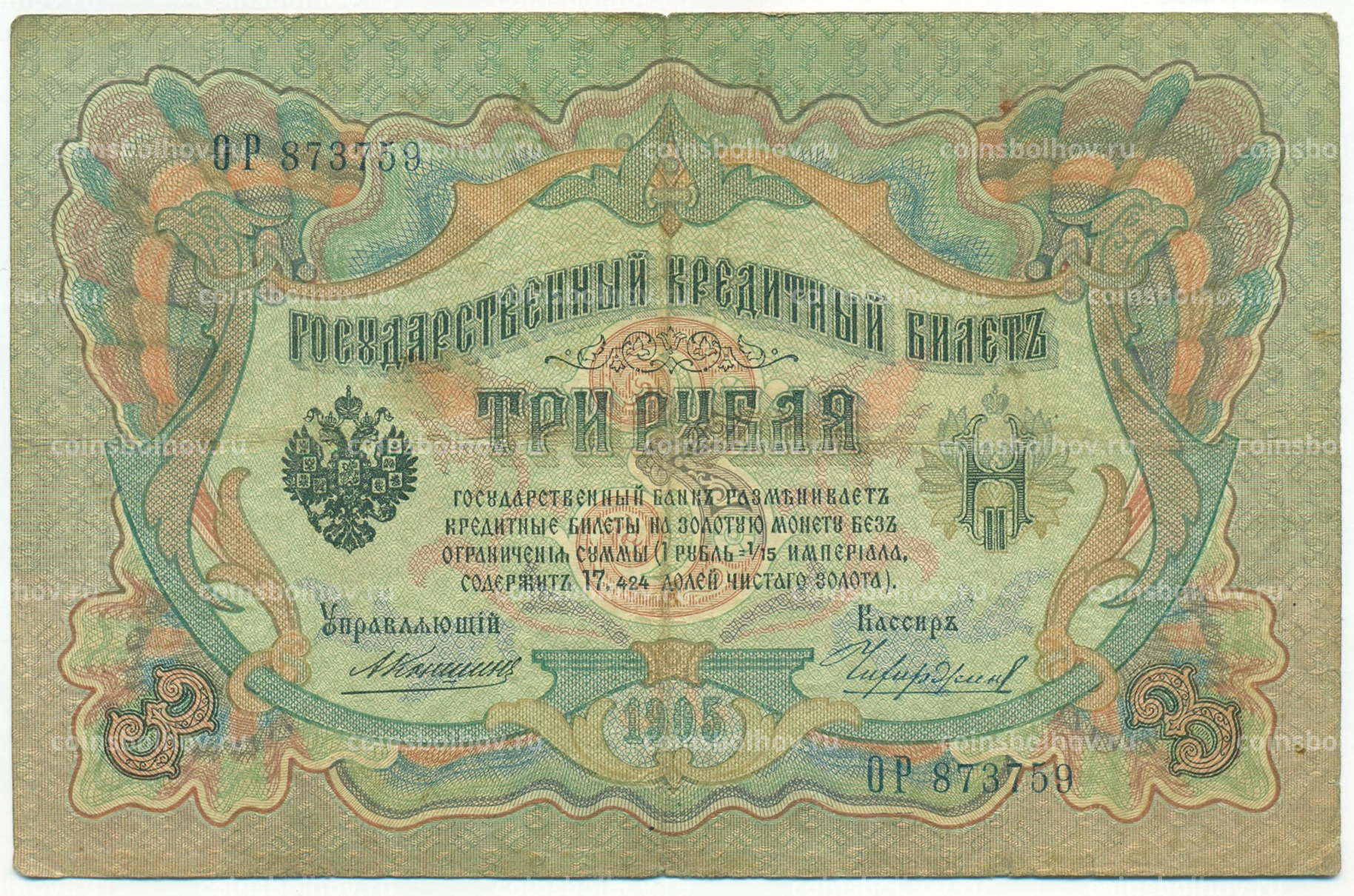 Банкнота 3 рубля 1905 года Коншин / Чихиржин