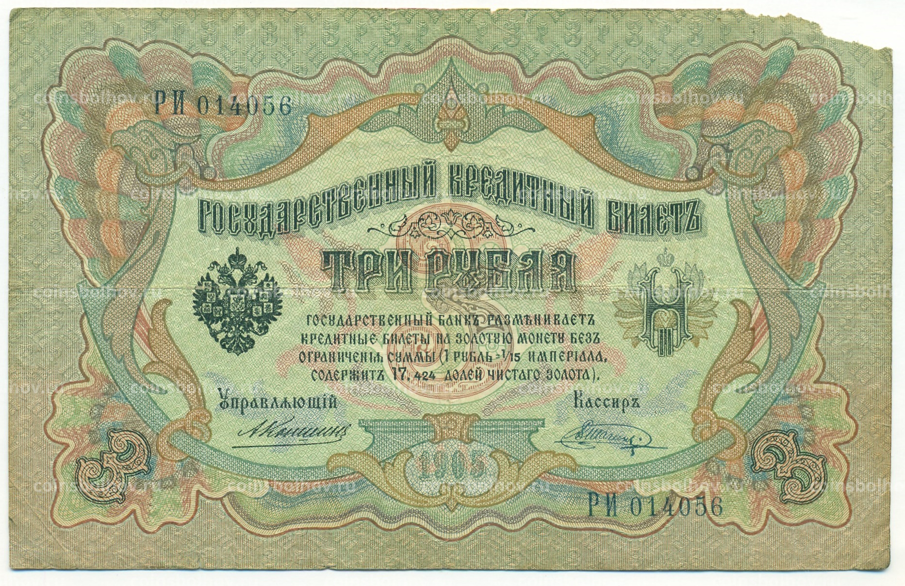Банкнота 3 рубля 1905 года Коншин / Шагин