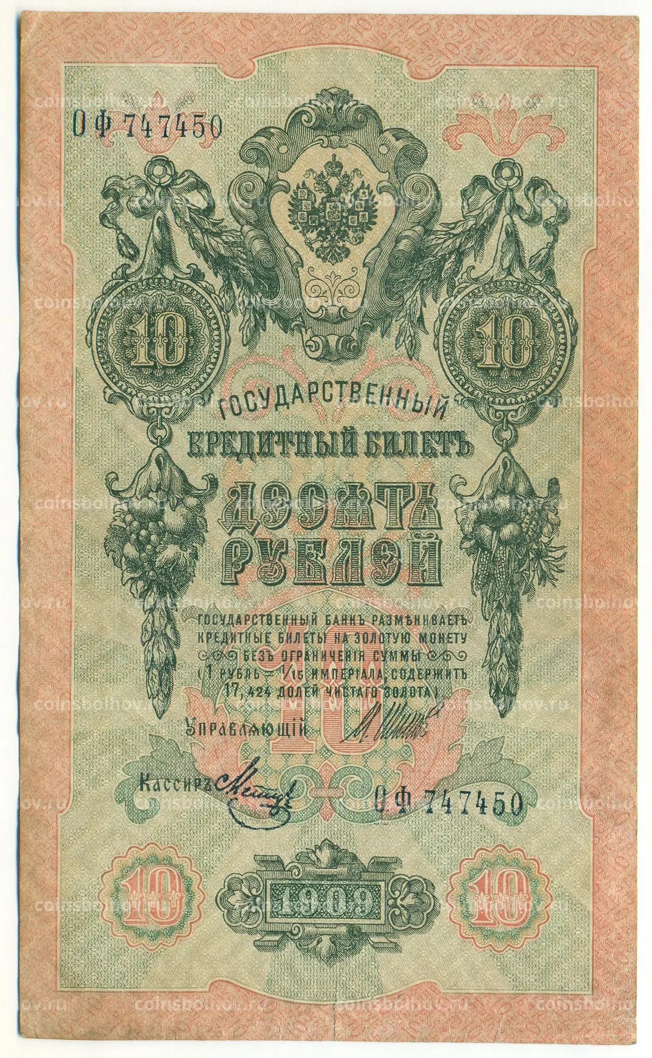 Банкнота 10 рублей 1909 года Шипов / Метц