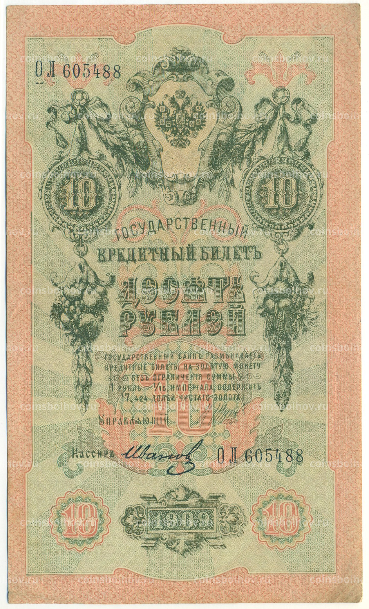 Банкнота 10 рублей 1909 года Шипов / Иванов