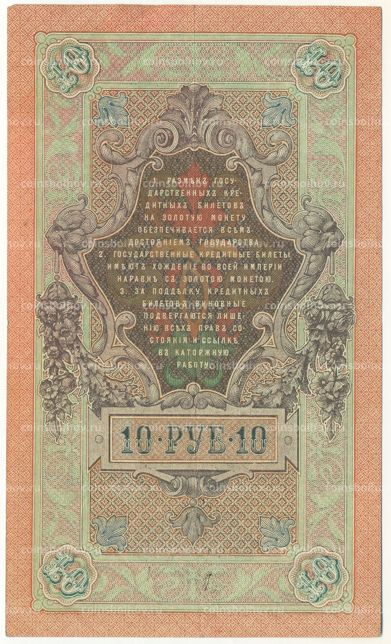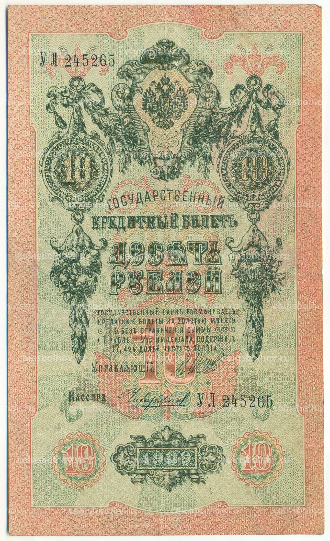 Банкнота 10 рублей 1909 года Шипов / Чихиржин