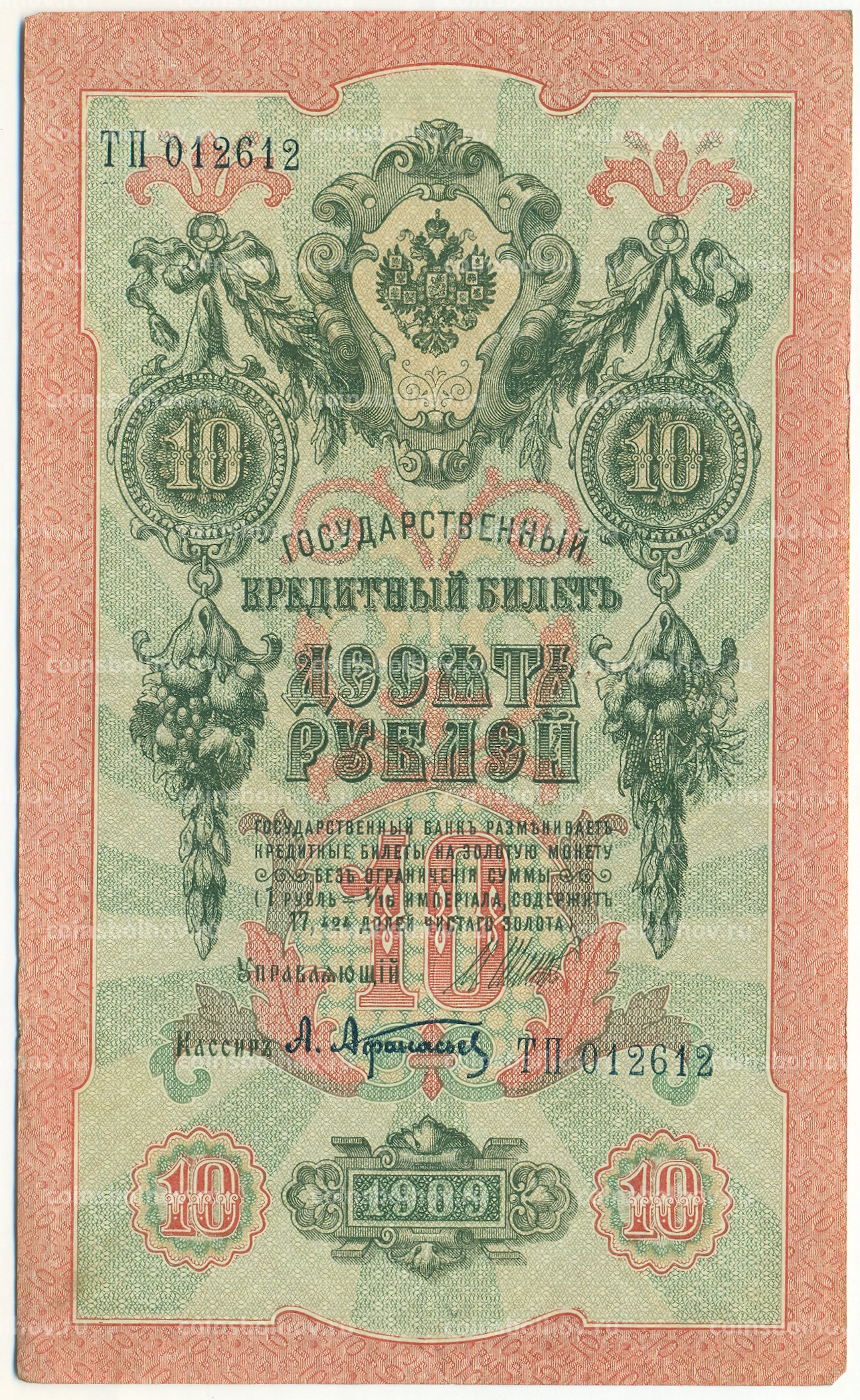 Банкнота 10 рублей 1909 года Шипов / Афанасьев
