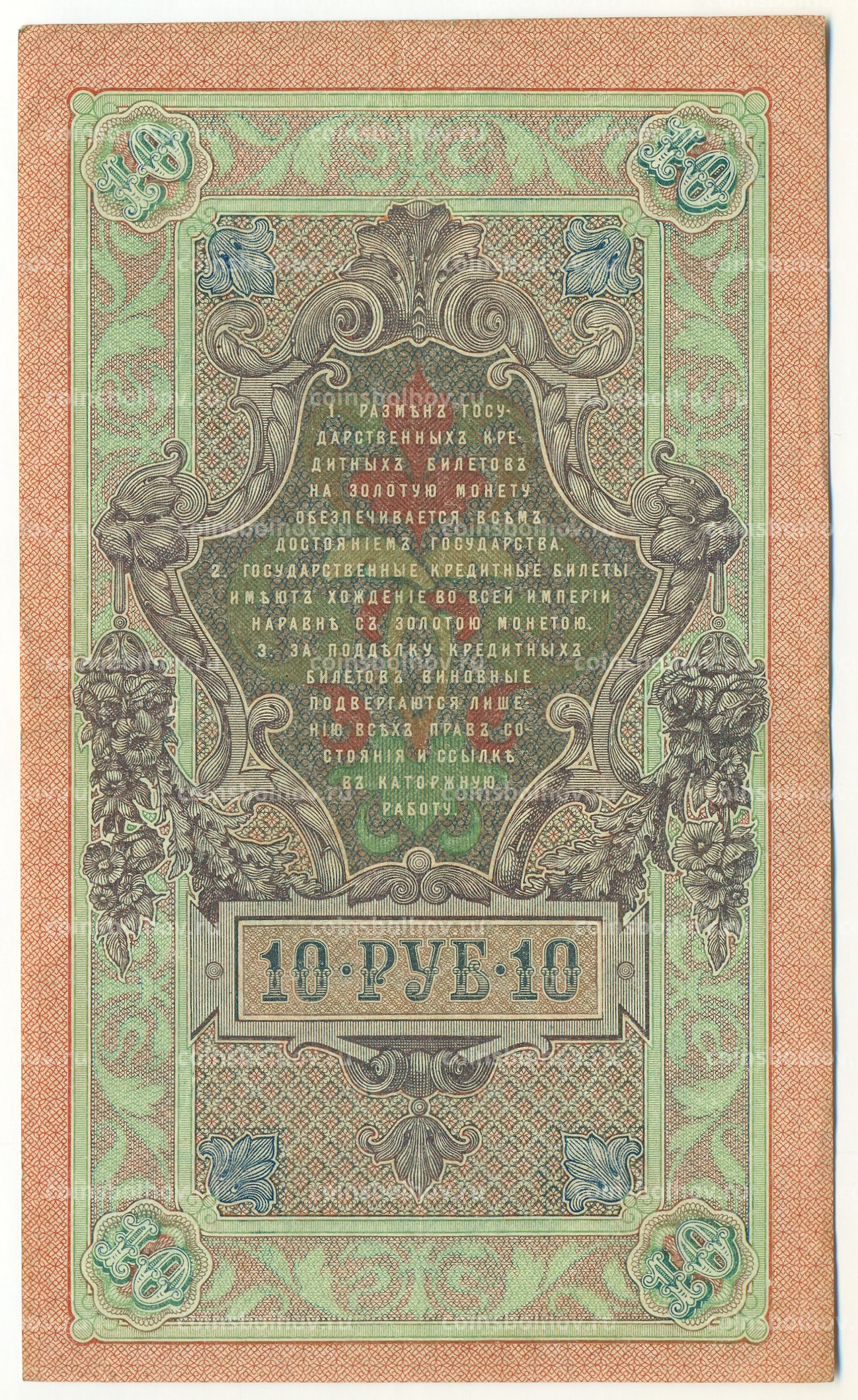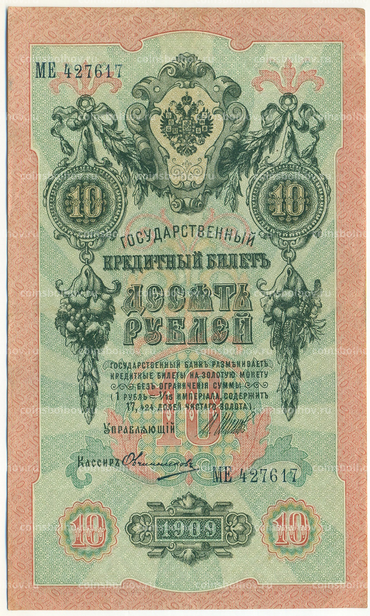 Банкнота 10 рублей 1909 года Шипов / Овчинников