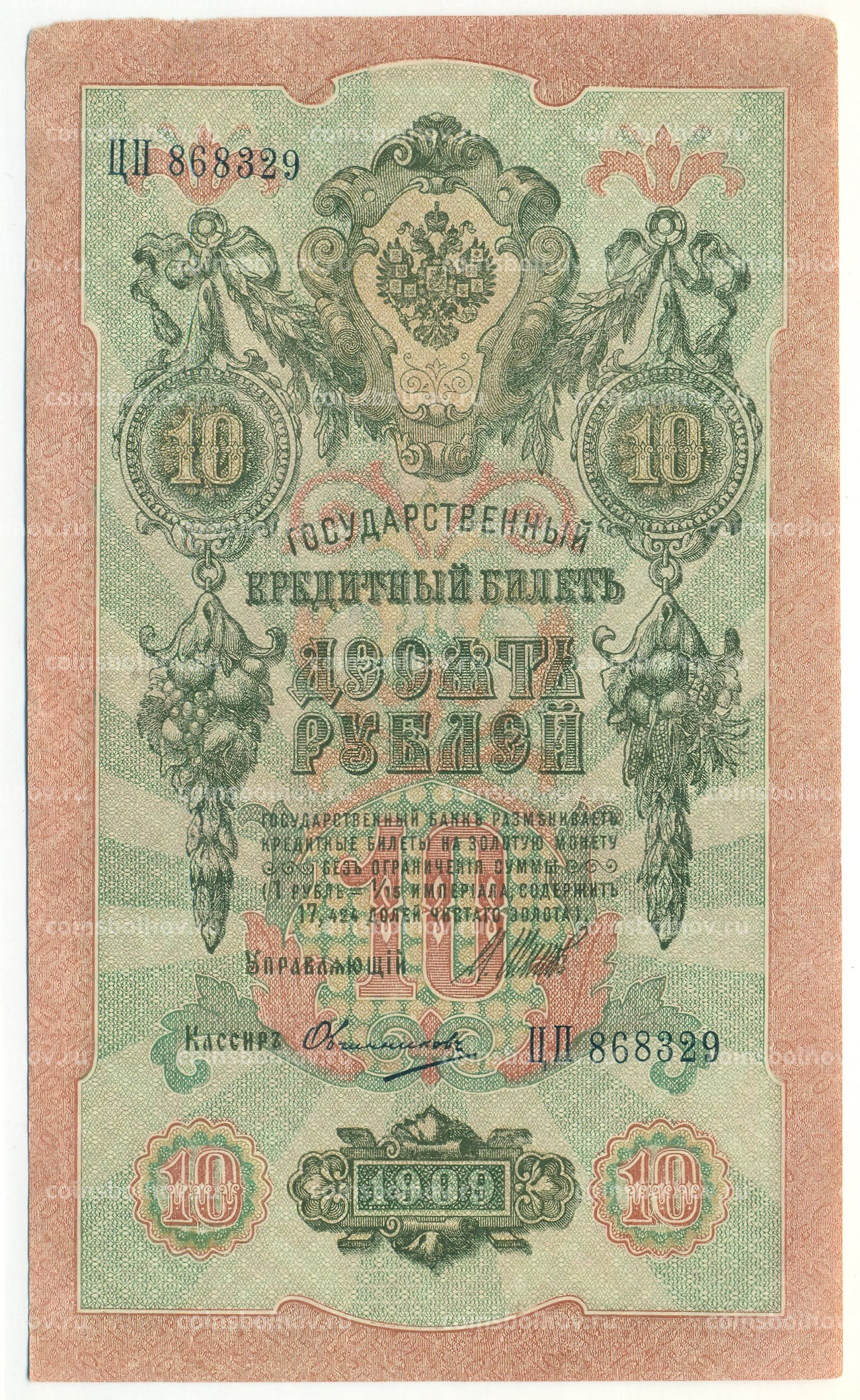 Банкнота 10 рублей 1909 года Шипов / Овчинников
