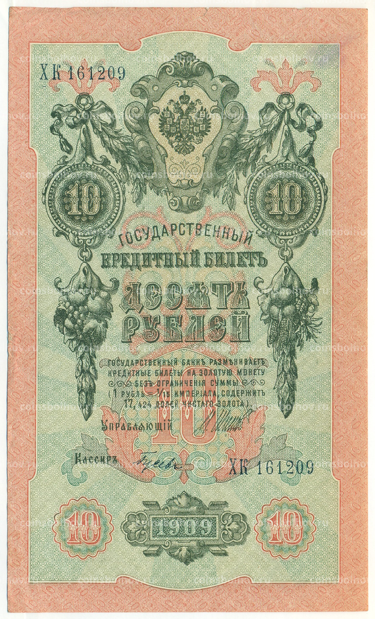 Банкнота 10 рублей 1909 года Шипов / Гусев