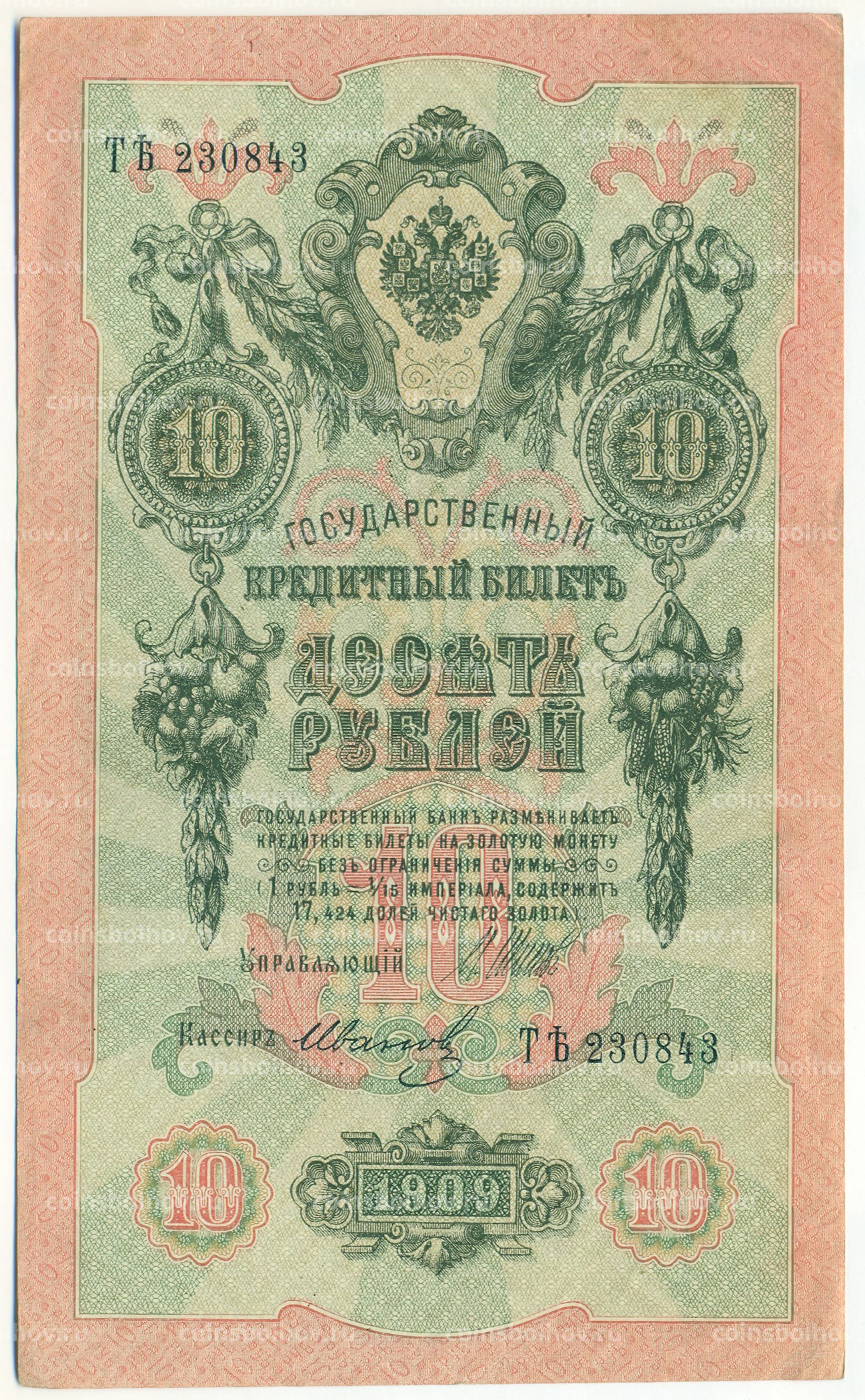 Банкнота 10 рублей 1909 года Шипов / Иванов