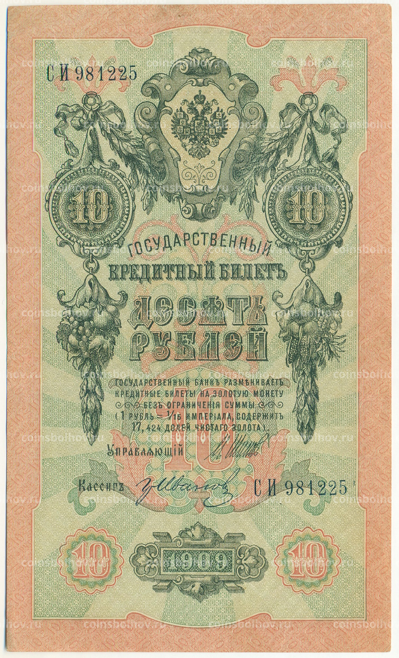 Банкнота 10 рублей 1909 года Шипов / Иванов
