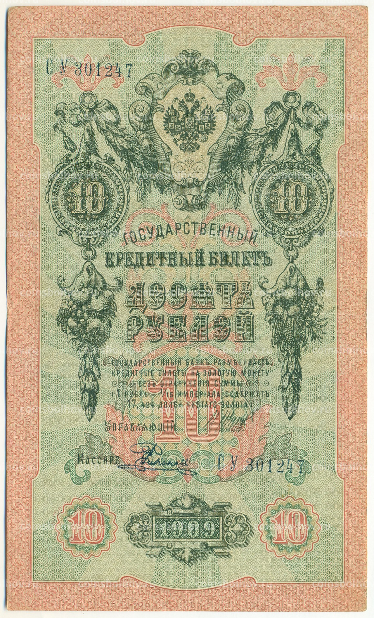 Банкнота 10 рублей 1909 года Шипов / Родионов