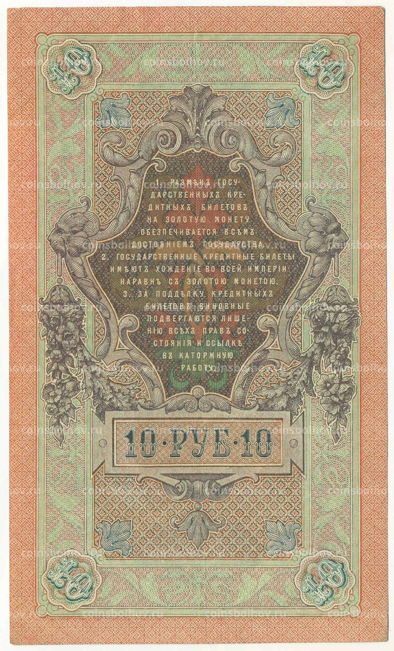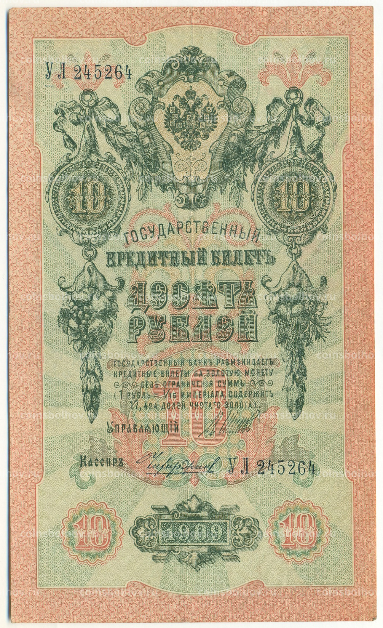 Банкнота 10 рублей 1909 года Шипов / Чихиржин