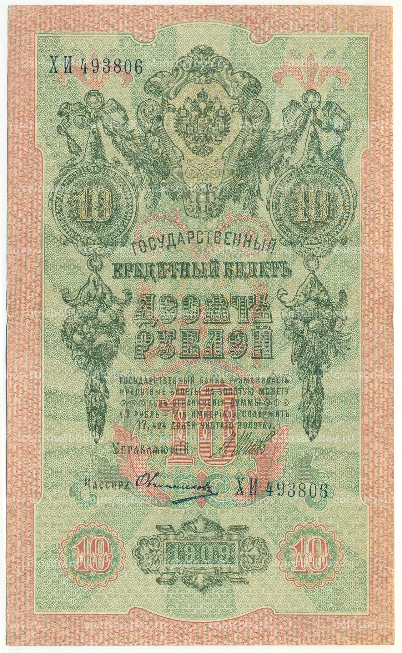 Банкнота 10 рублей 1909 года Шипов / Овчинников