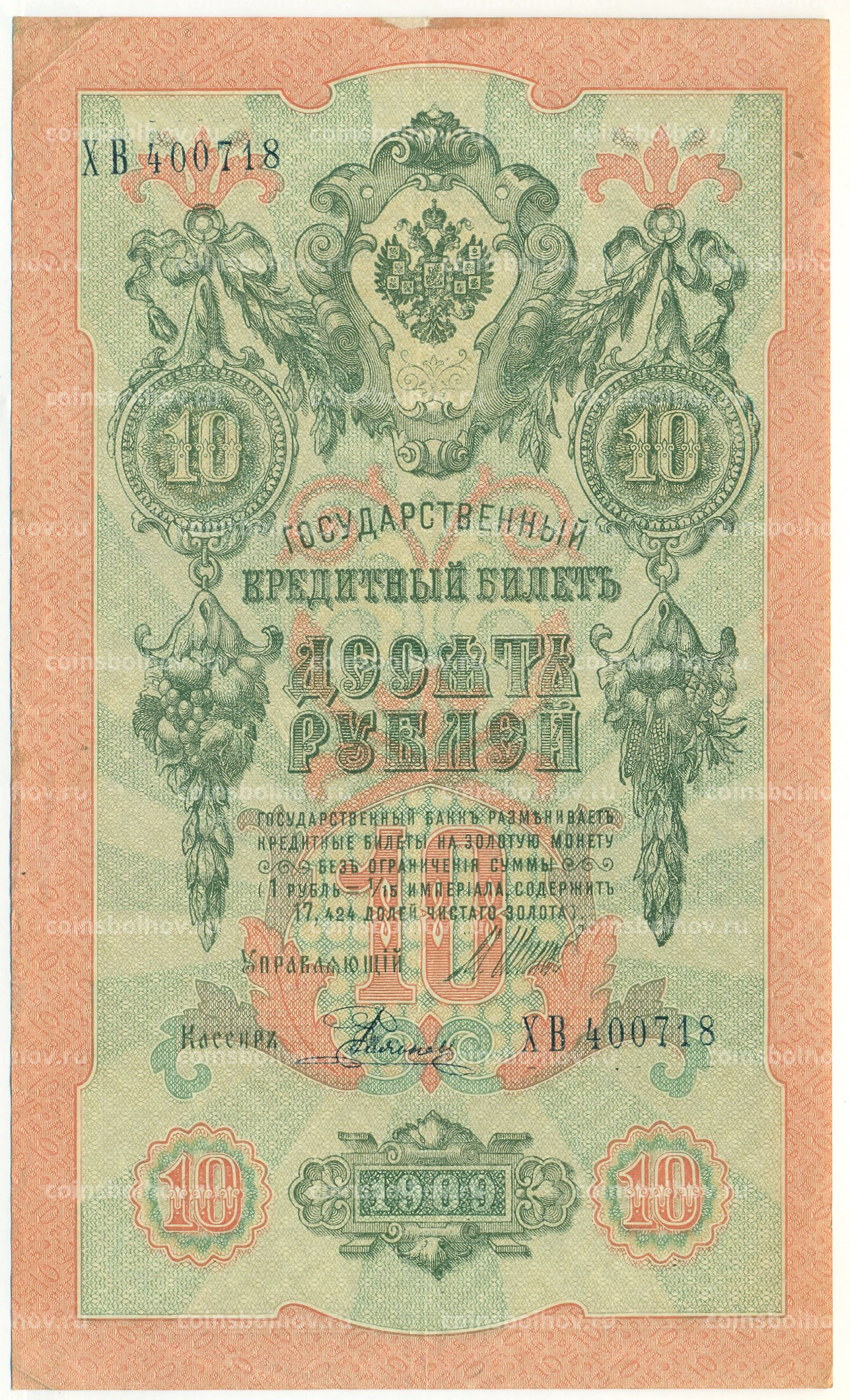 Банкнота 10 рублей 1909 года Шипов / Родионов